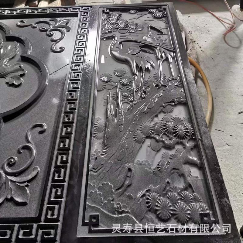 山西黑花岗岩别墅影壁墙雕刻中国黑石材异形雕刻亮度高石质坚硬
