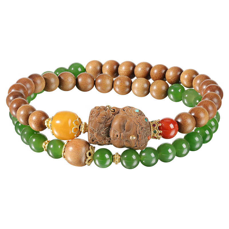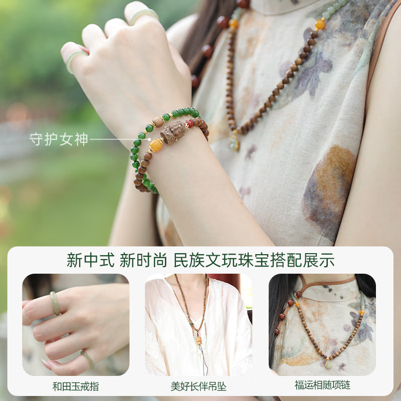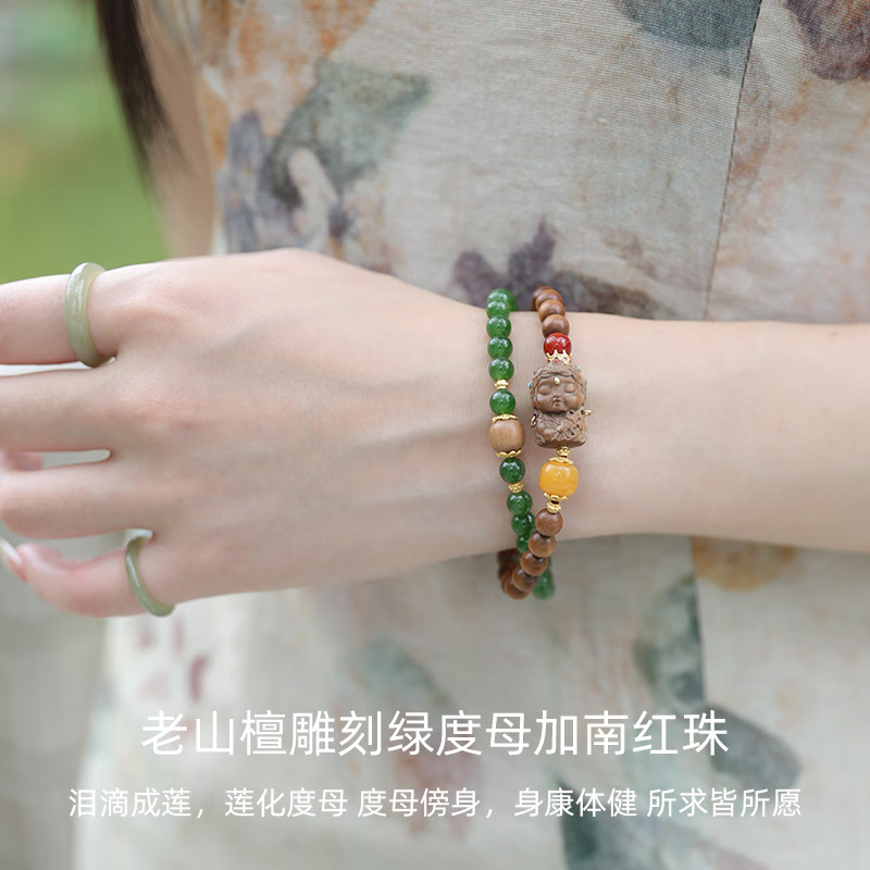 印度老山檀手串搭配和田碧玉扎基拉姆绿度母手链原创檀香文玩念珠