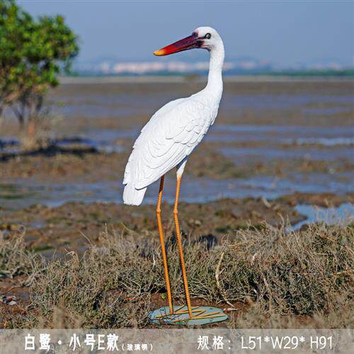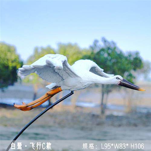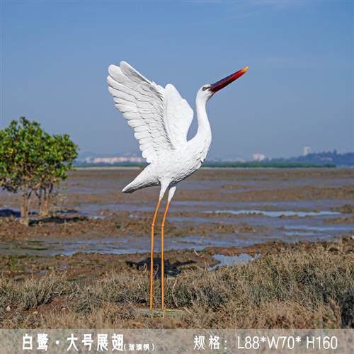 室外仿真仙鹤雕塑水景池塘白鹤装饰假山花园售楼部玻璃钢白鹭摆件