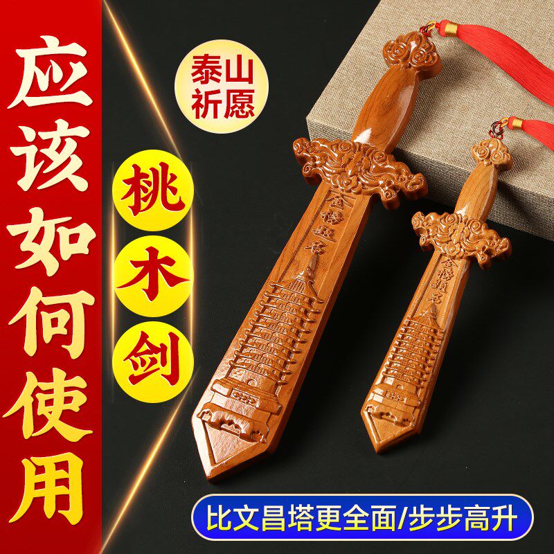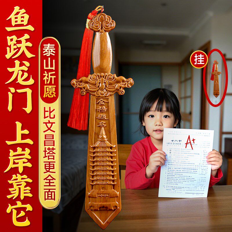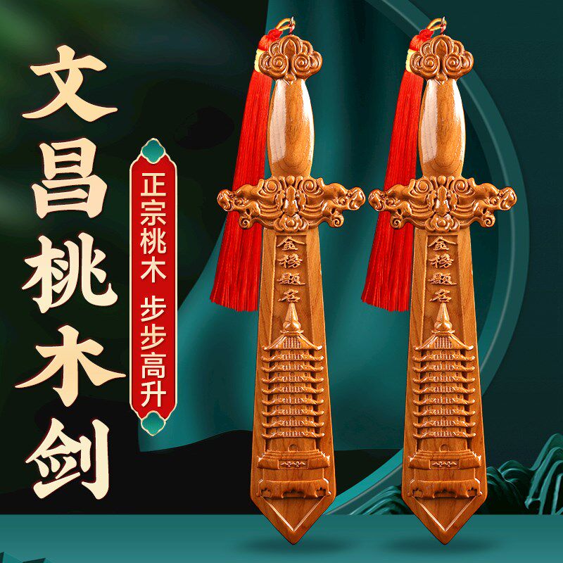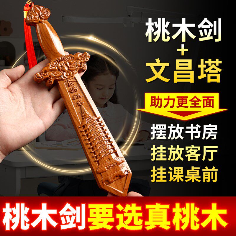 文昌塔桃木剑金榜题名上岸挂件祥龙实木质雕刻挂件书房客厅办公室