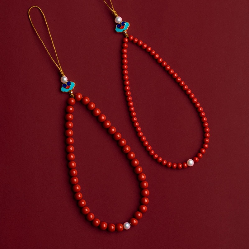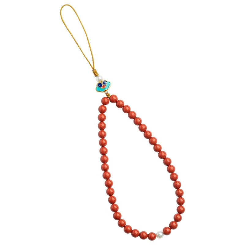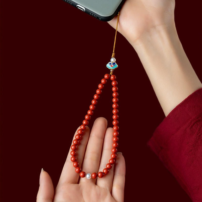 普陀山保真朱砂珍珠中国r风手机挂绳挂件手腕挂绳男女本命年转运