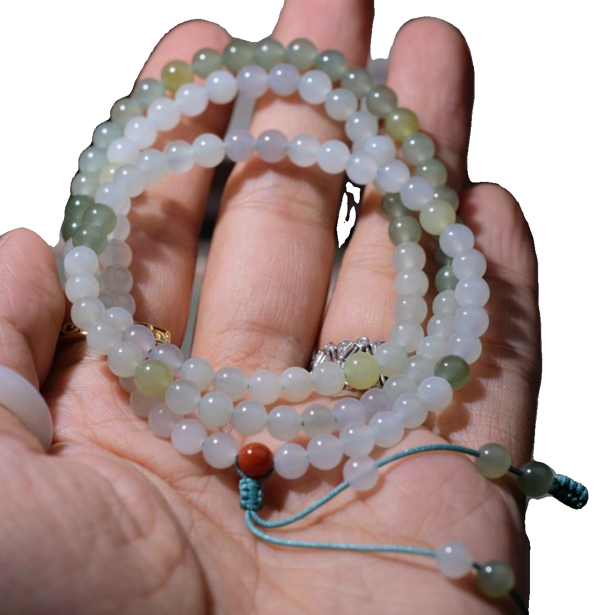住朴-女款项链多圈手串天然手链 和田玉渐变项链晴水渐变白色