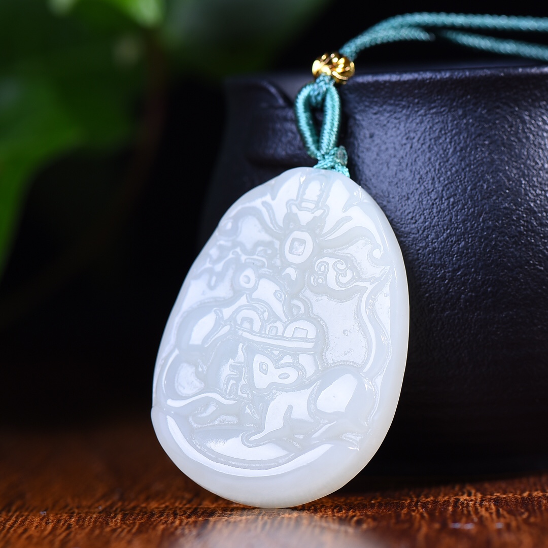 新疆和田玉羊脂玉白玉青白玉生肖鼠平安牌吊坠男女款挂件玉坠玉佩