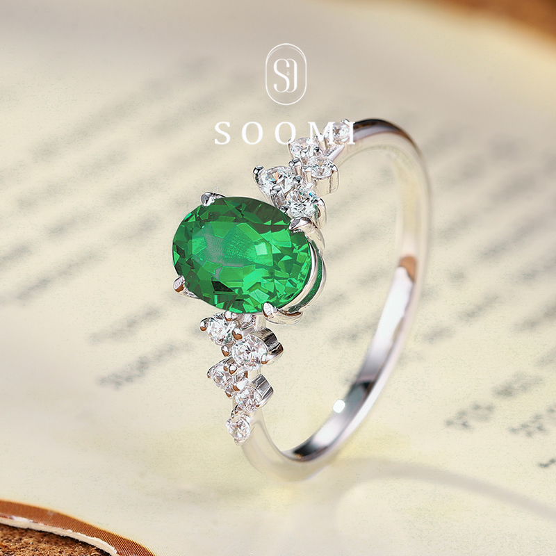 【新品 璇玑】祖母绿戒指1.3ct培育木佐色绿宝石925纯银彩宝女戒
