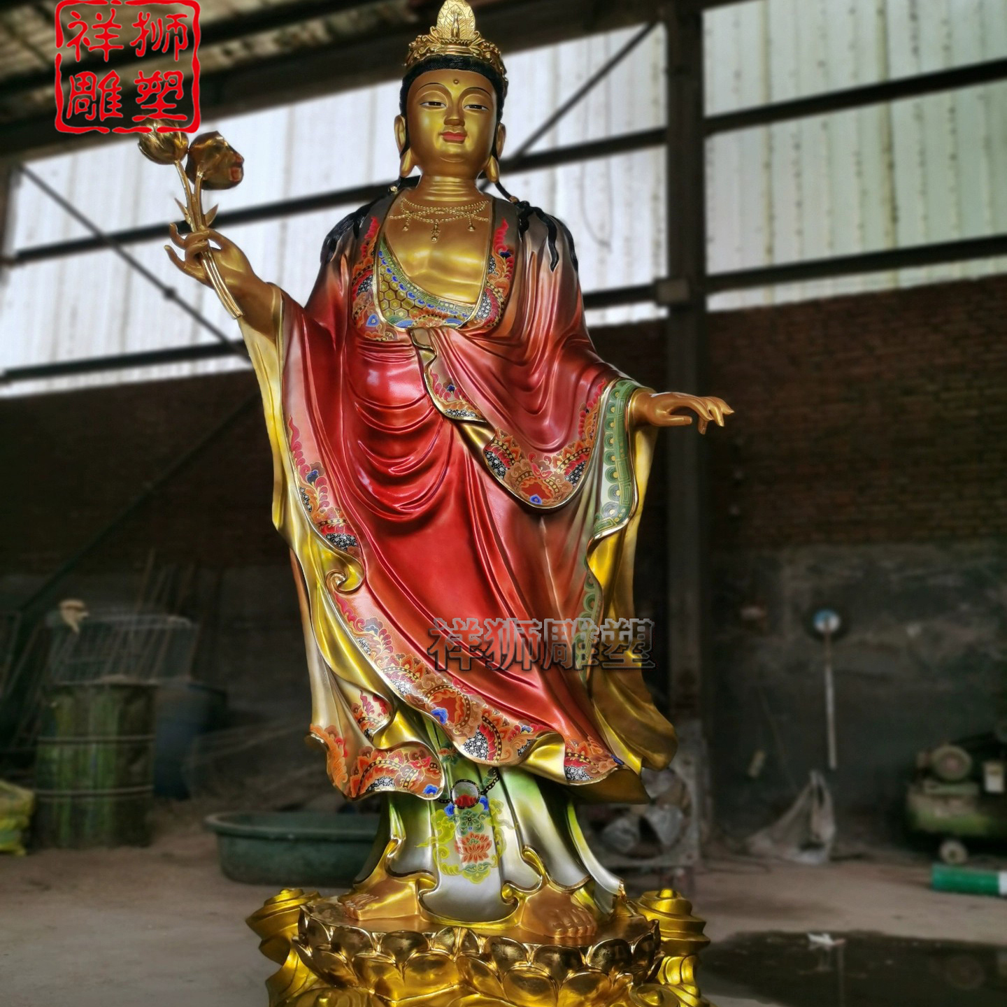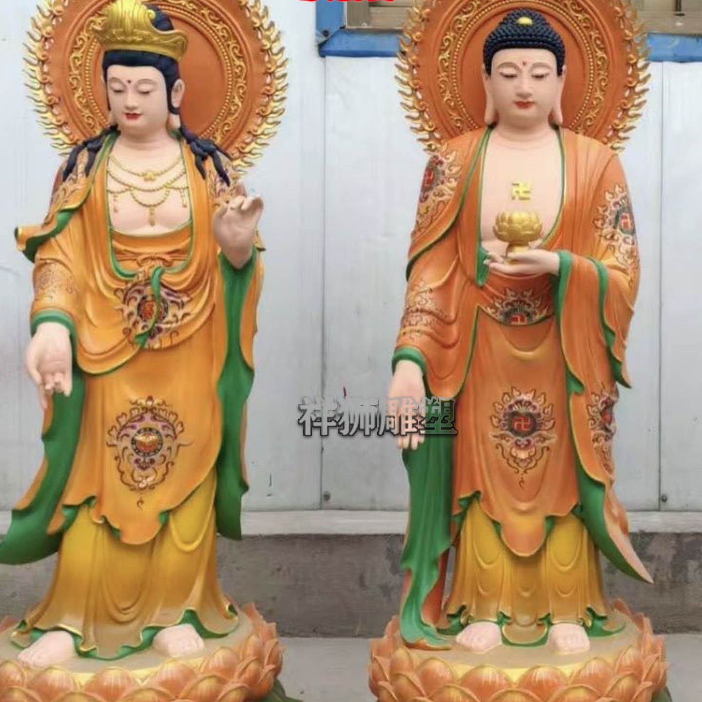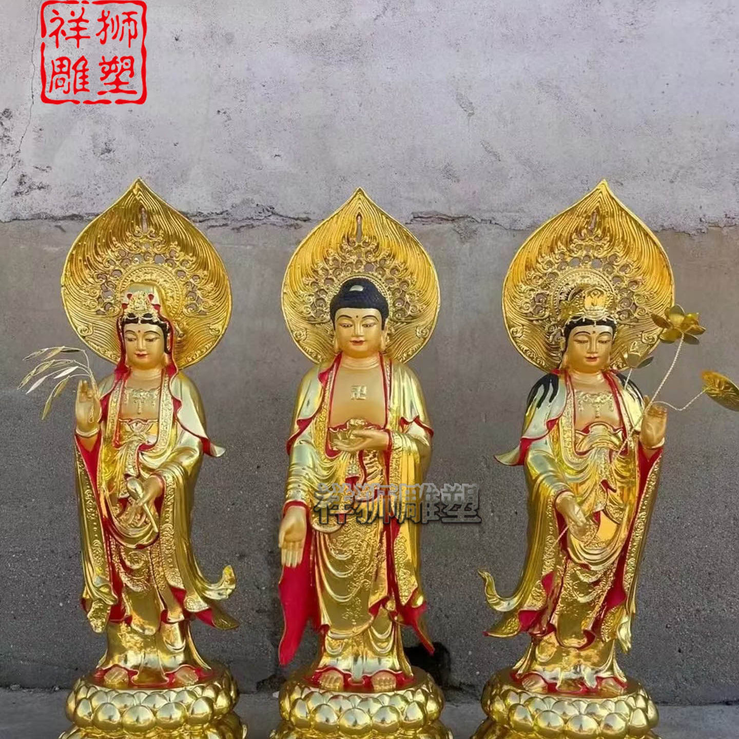 纯铜彩绘贴金西方三圣佛像家居佛堂供奉摆件定制批发祥狮雕塑精工