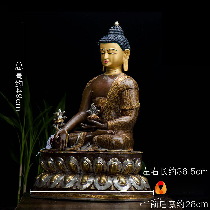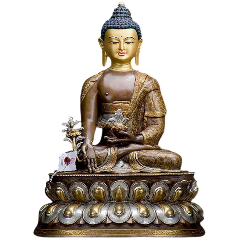 药师铜像现代工艺品尼泊尔手工15寸铜鎏金鎏银铜像摆件