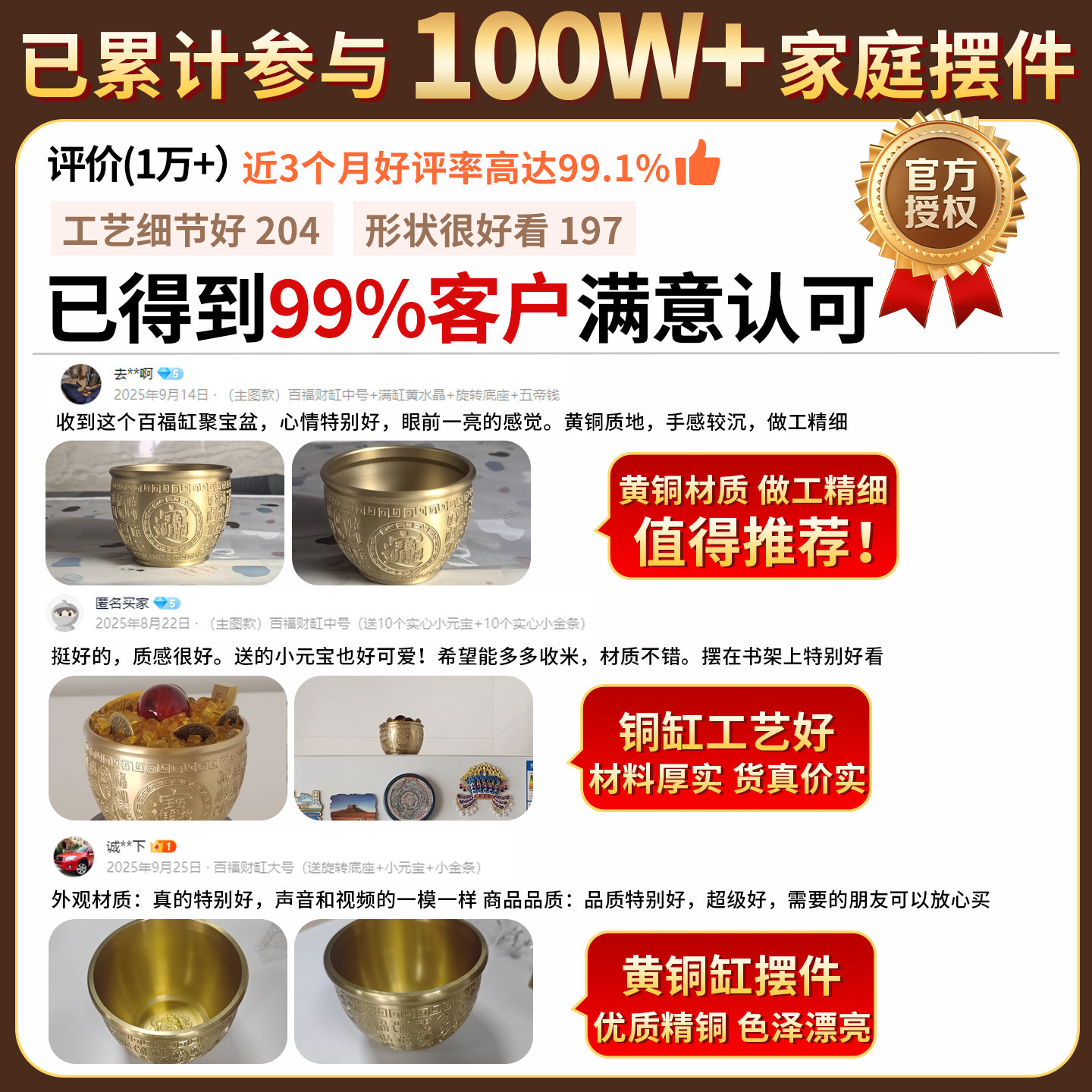 黄铜米缸百福缸纯黄铜摆件聚宝盆新居乔迁客厅玄关元宝水晶冰箱