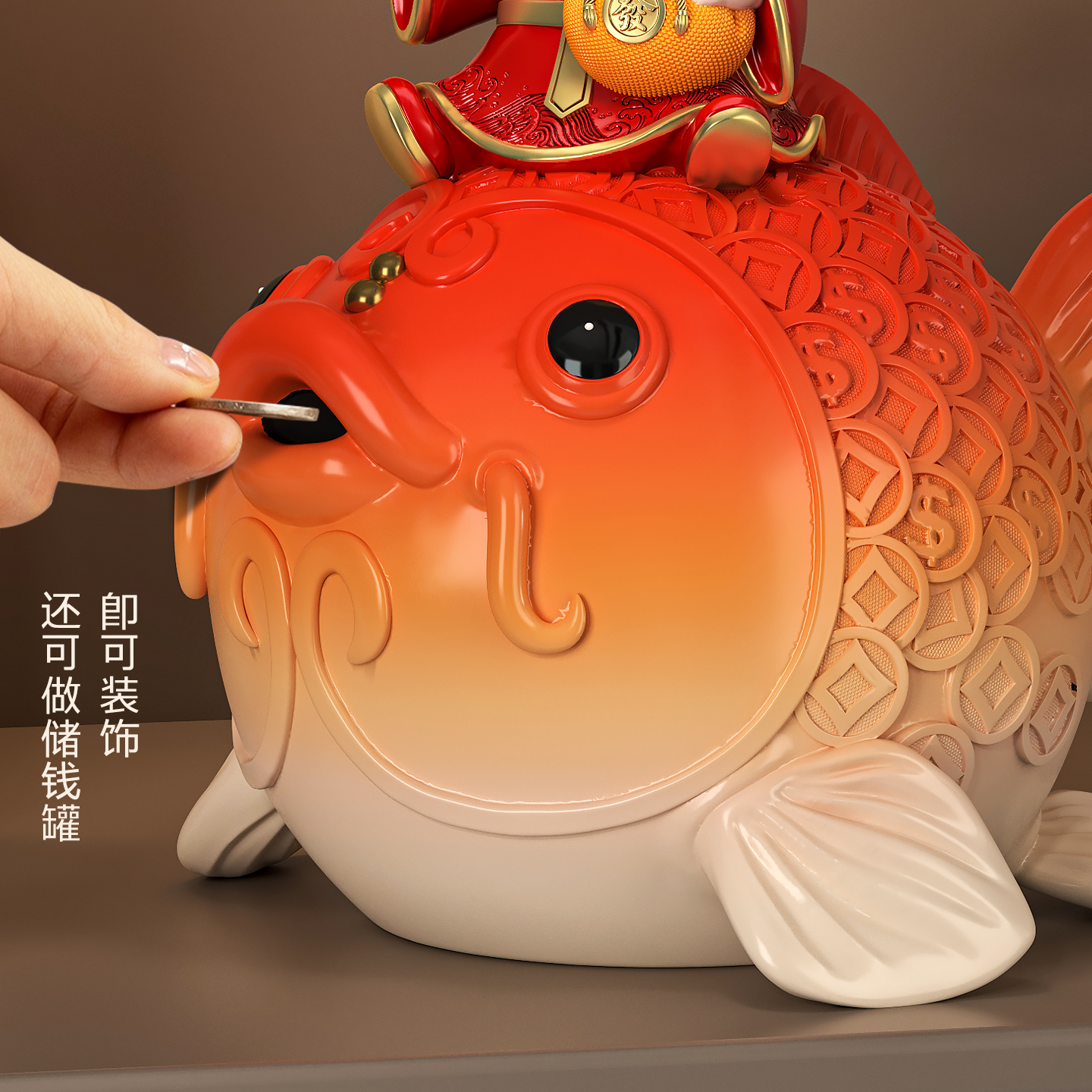 锦鲤财神爷摆件存钱罐客厅玄关简约收银台装饰品店铺乔迁开业礼物