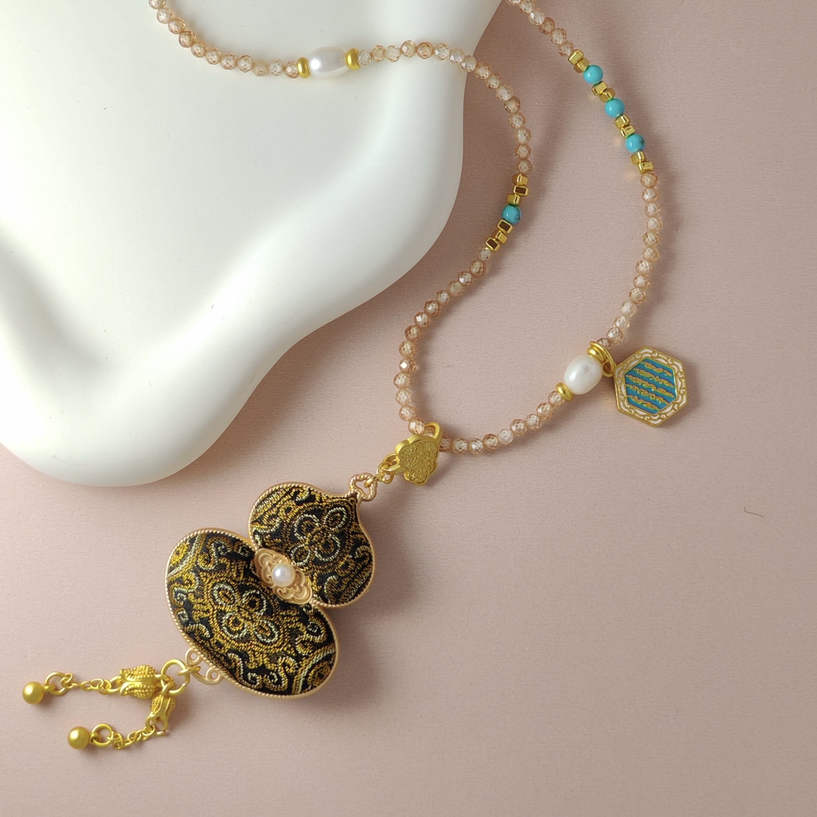 非遗宋锦项链原创宋锦葫芦diy项链晓艾手作马上有钱花双面包挂