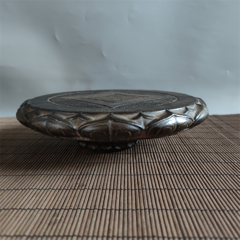 天然青石雕刻荷花壶承茶托宝贝底座民俗怀旧工艺雅居茶舍实用收藏