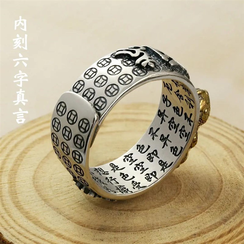 财源大貔貅戒指开口可调t节运转戒覆古时尚男女款六字真言指环K