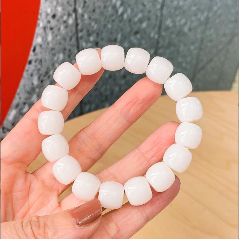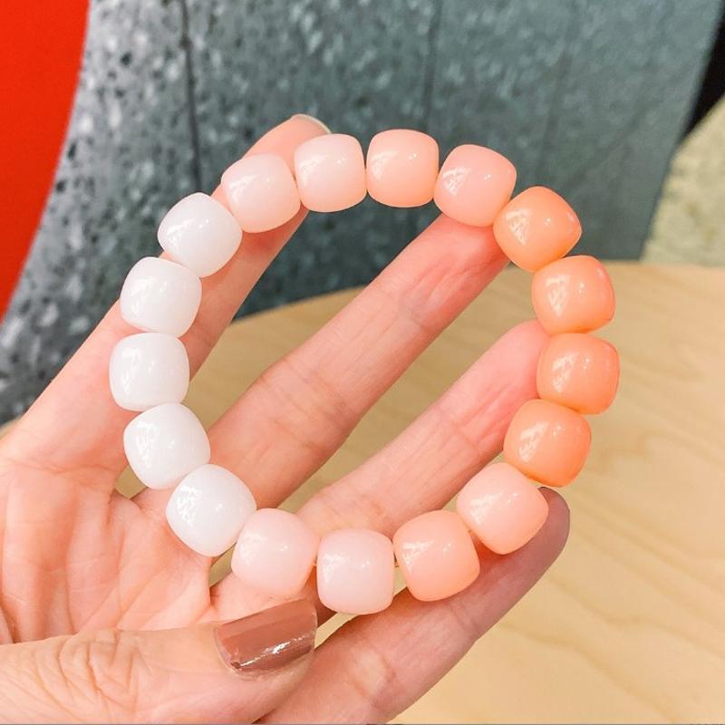 冰透白玉色菩提手串绕指柔渐变色粉色学生版盘玩圆珠手链手串情侣