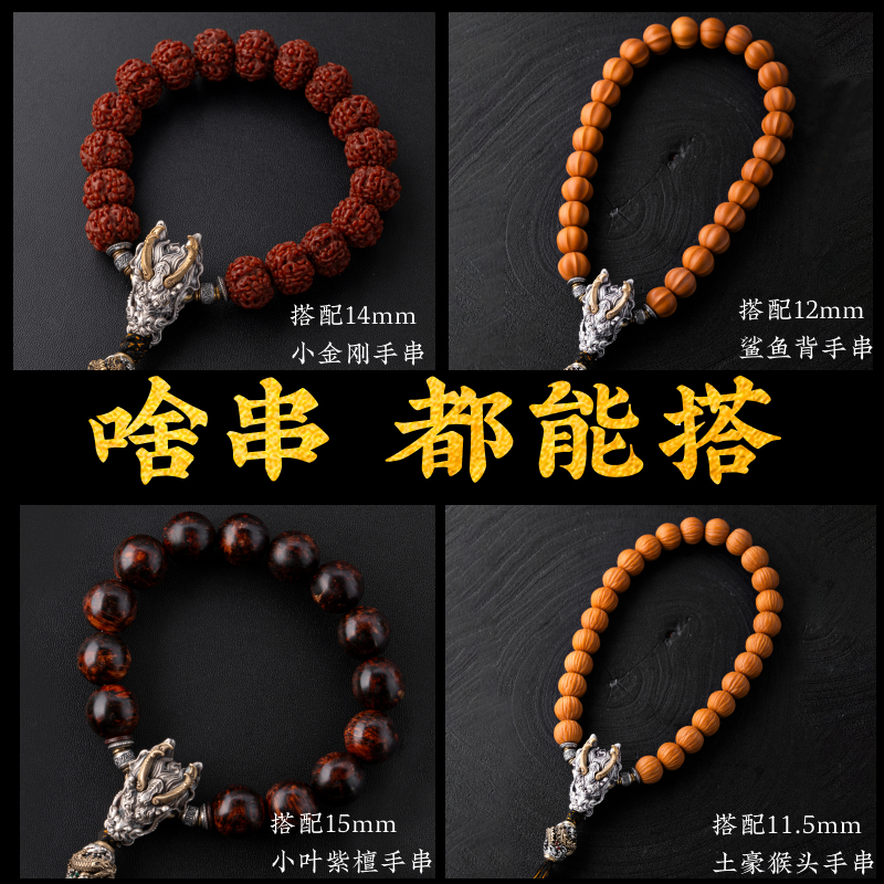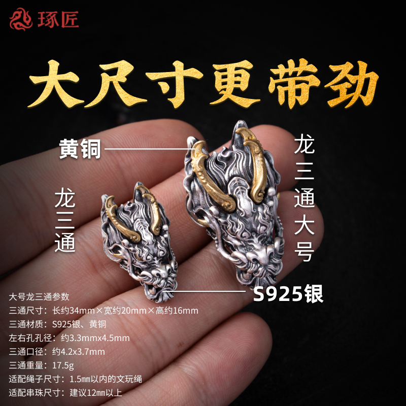 琢匠大号龙头三通文玩配饰金刚菩提手工diy手串配珠国风银饰配件