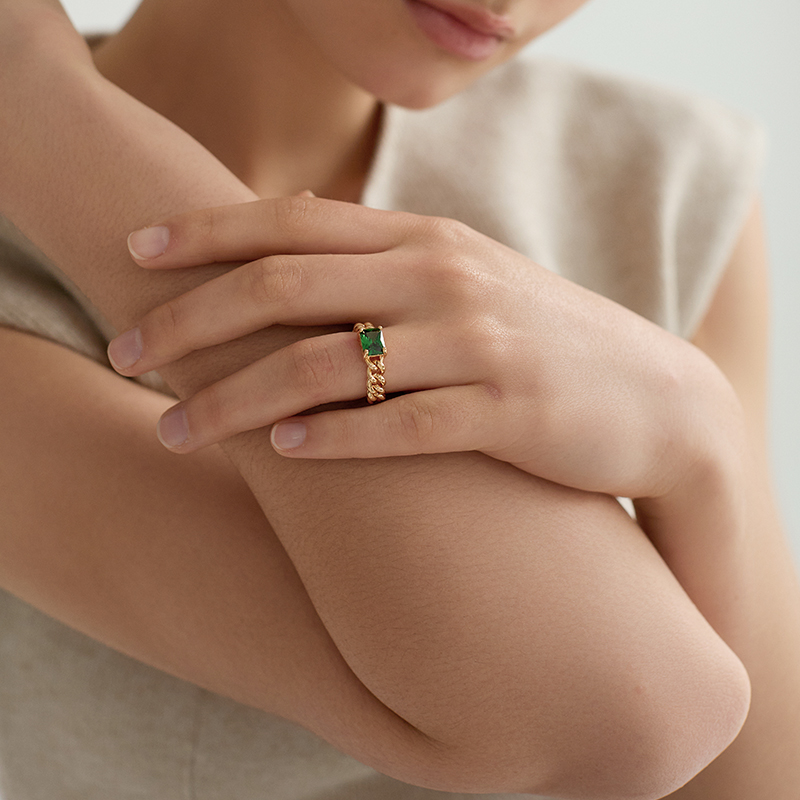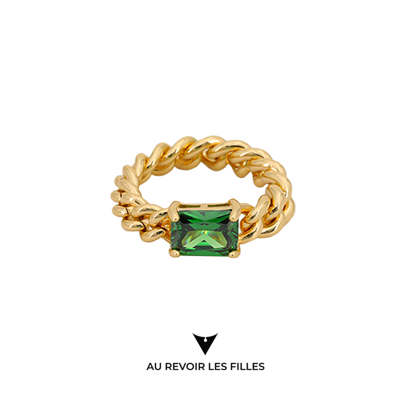 Au Revoir Les Filles 绿宝石戒指女小众设计链条复古金色食指环
