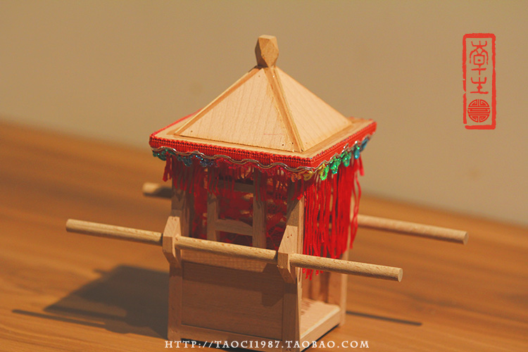 家居摆件迷你仿古轿子模型木制抬轿微型结婚花轿装饰中式工艺品
