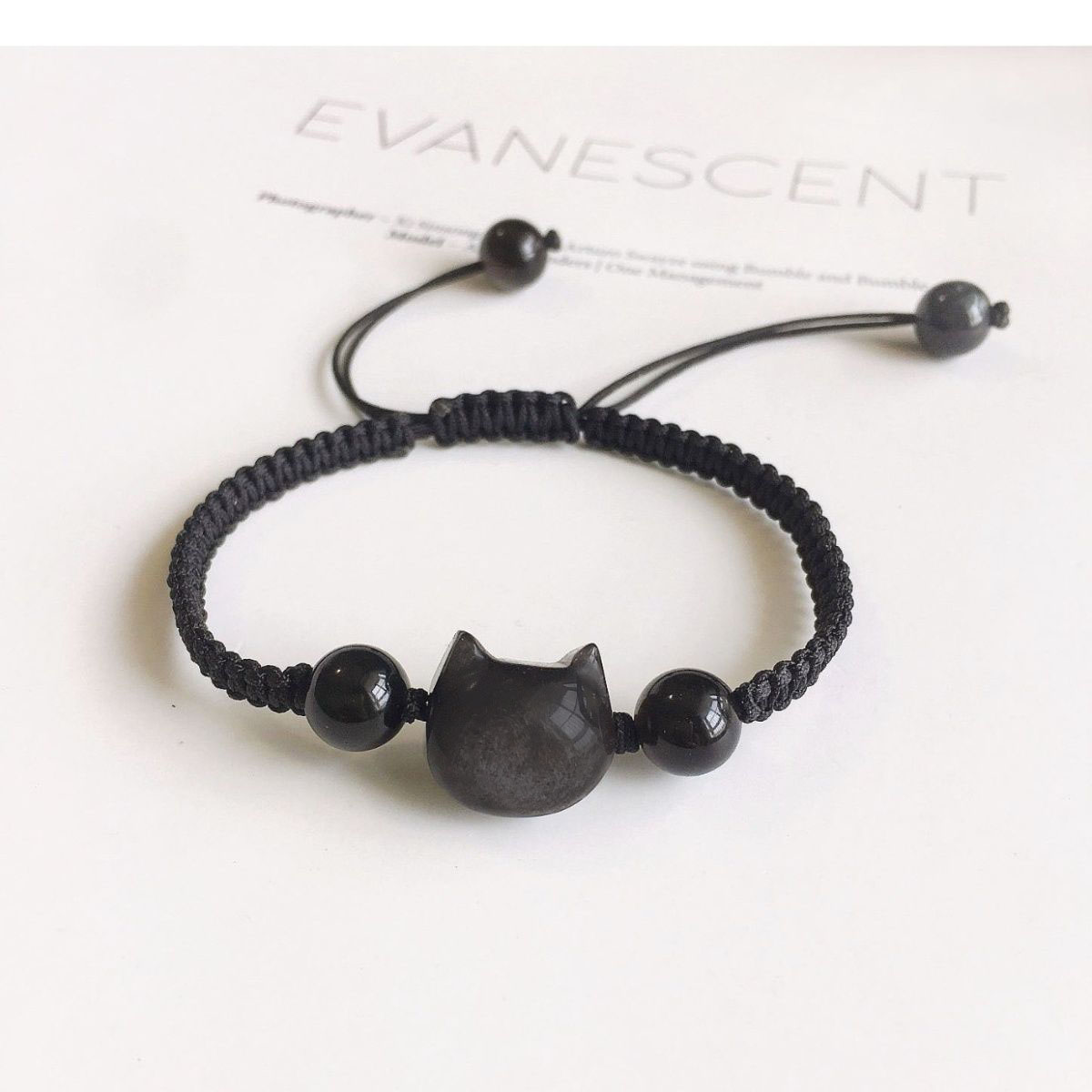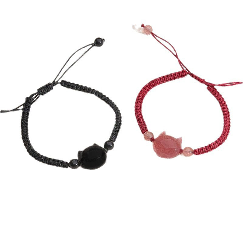 2025新款猫咪情侣手链仿水晶手绳闺蜜黑曜本命年脱单编织转运红绳