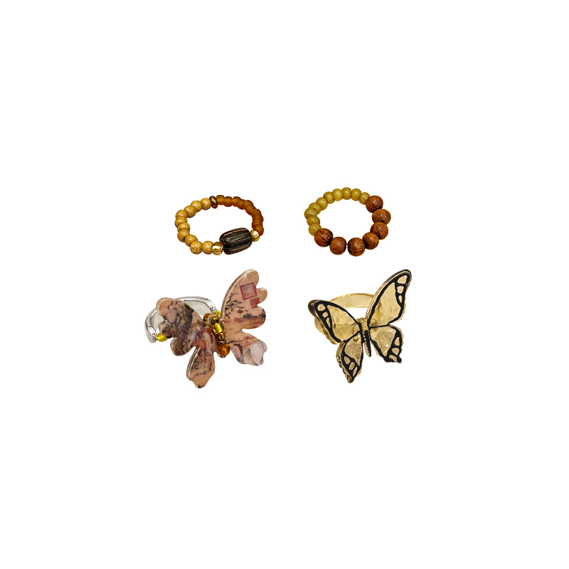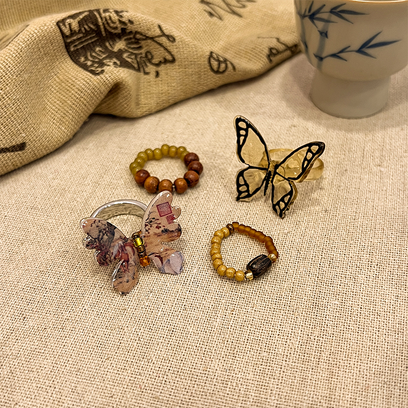 新中式蝴蝶戒指女树脂国风小众设计咖色系独特复古食指戒串珠指环