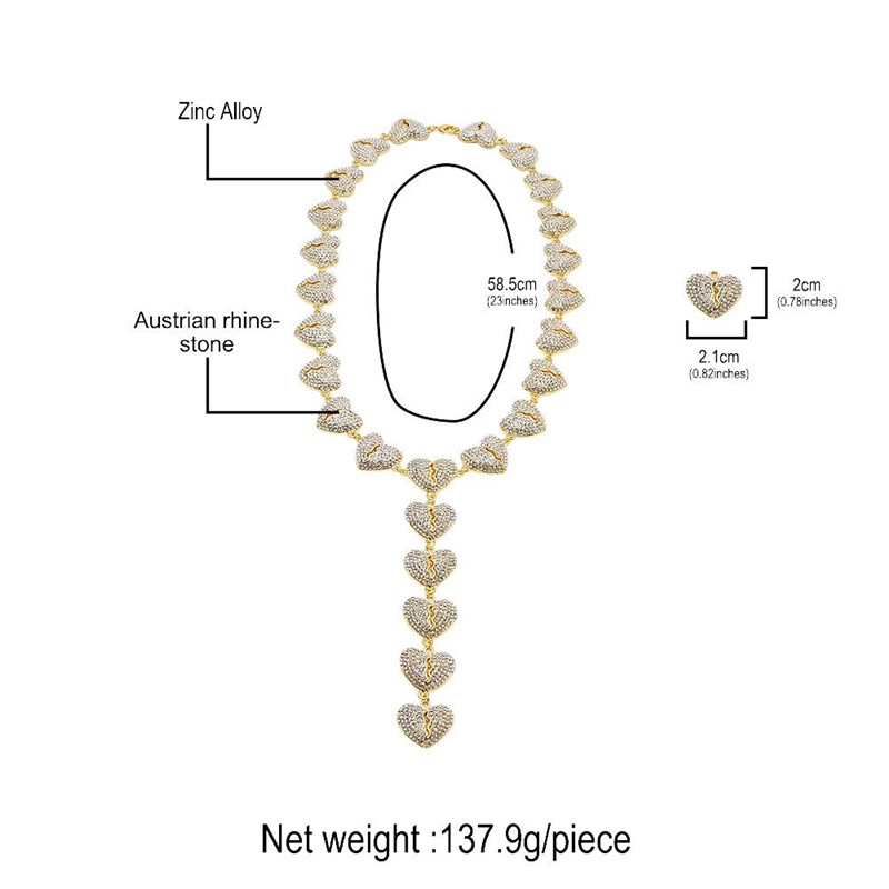 新品项链满新款钻欧美心碎爱心配饰套装新娘耳环连接嘻哈链饰品锆