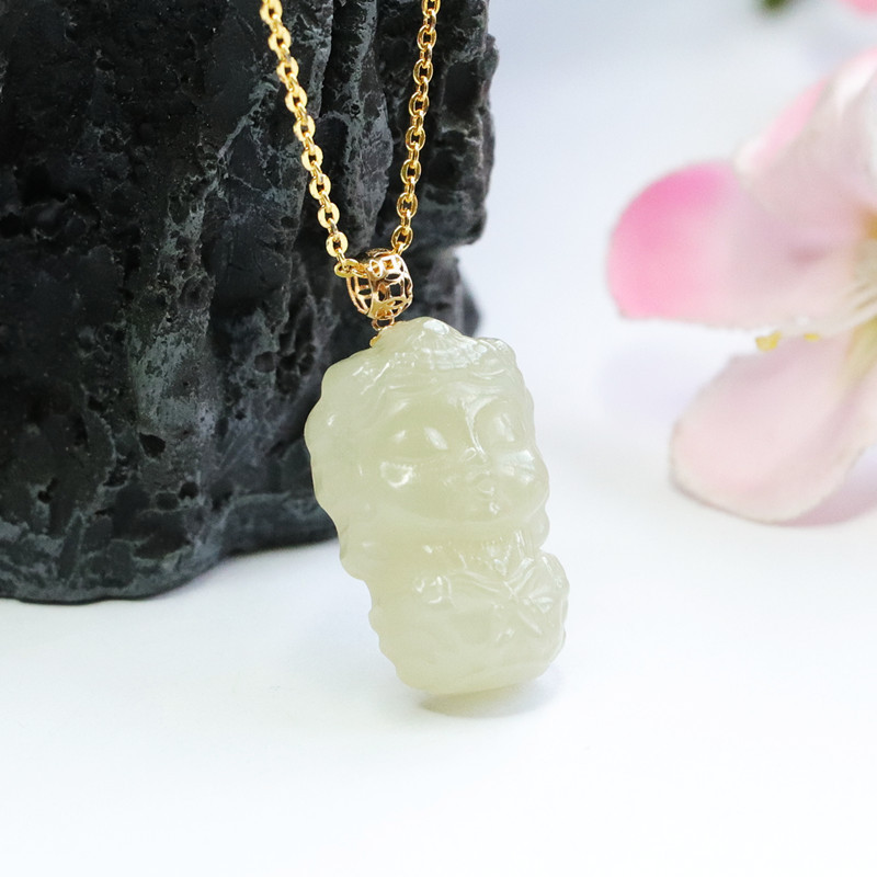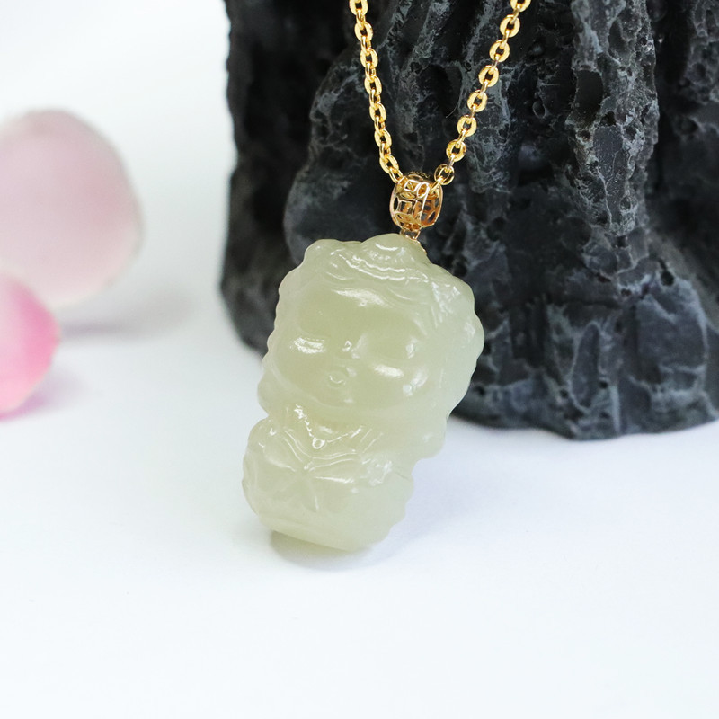 鑫澜天然珠宝」天然和田玉吊坠18k金镶晴水宝宝绿度母