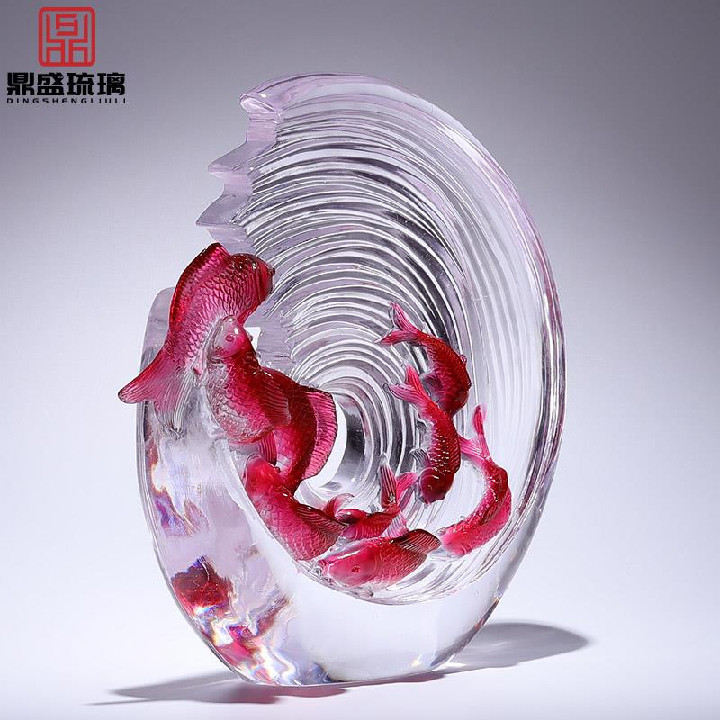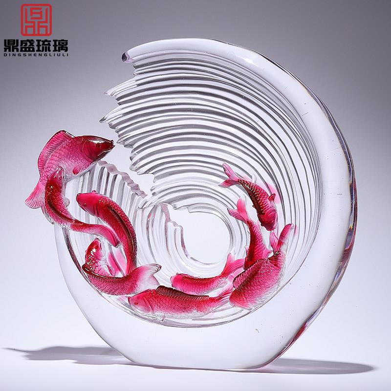 非遗招财庭院锦鲤九条鱼摆件高档办公室客厅公司前台装饰乔迁礼物