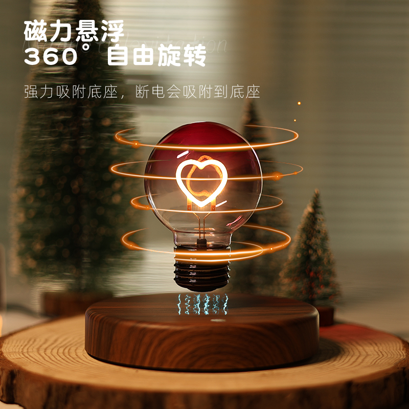 爱心悬浮灯泡七夕情人节情侣高级感氛围灯爱心创意小夜灯桌面摆件