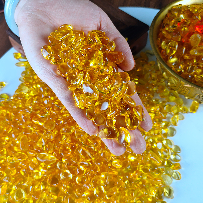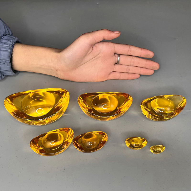 黄水晶碎石大颗粒聚宝盆装饰品合成水晶琉璃元宝工艺品家居摆件