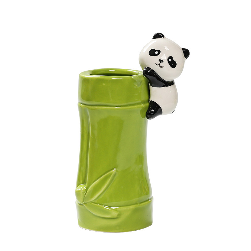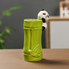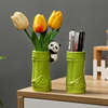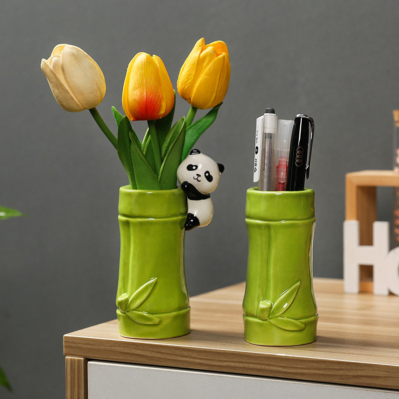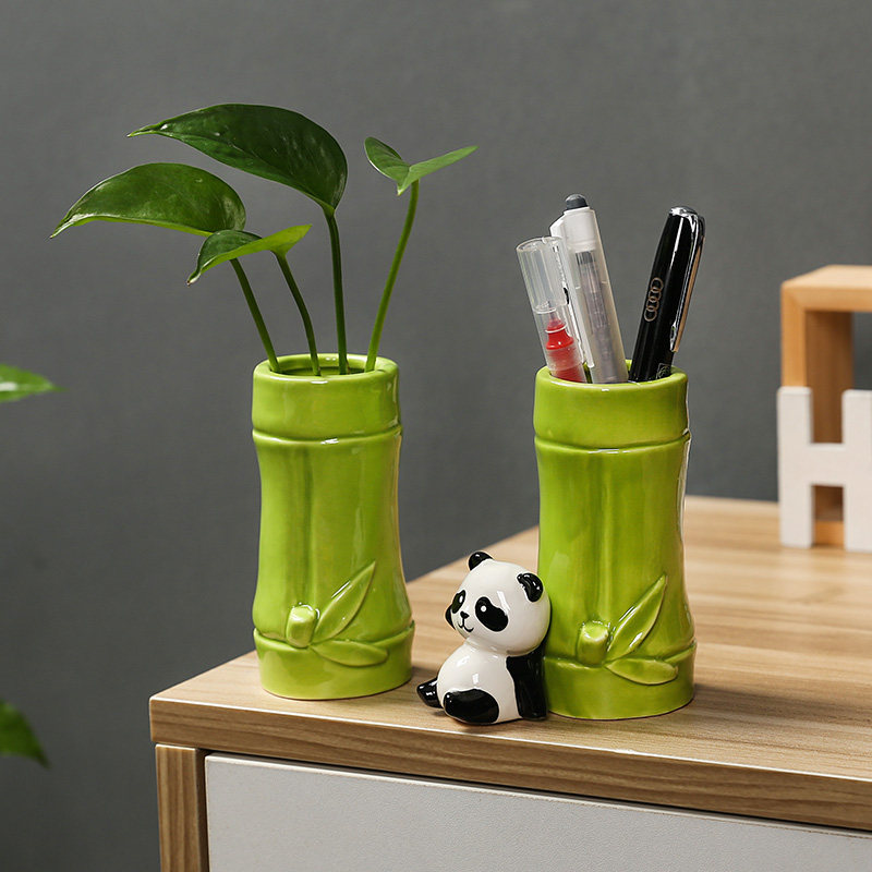 熊猫竹叶绿笔筒办公室桌面装饰品化妆刷收纳盒客厅工位小清新摆件