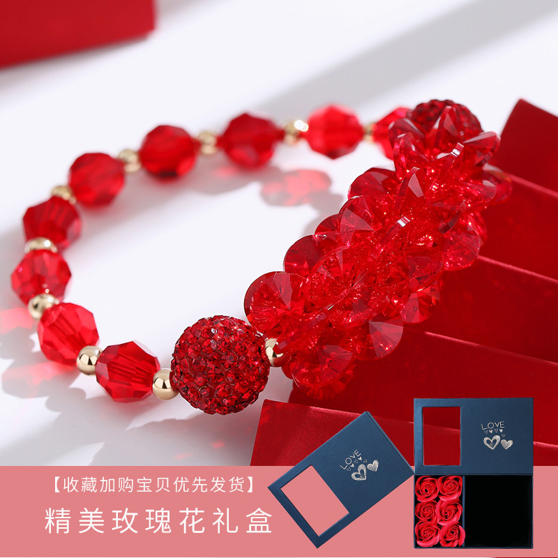 奥地利红水晶手链女手饰复古红绳串珠小众夸张大气情人节礼物
