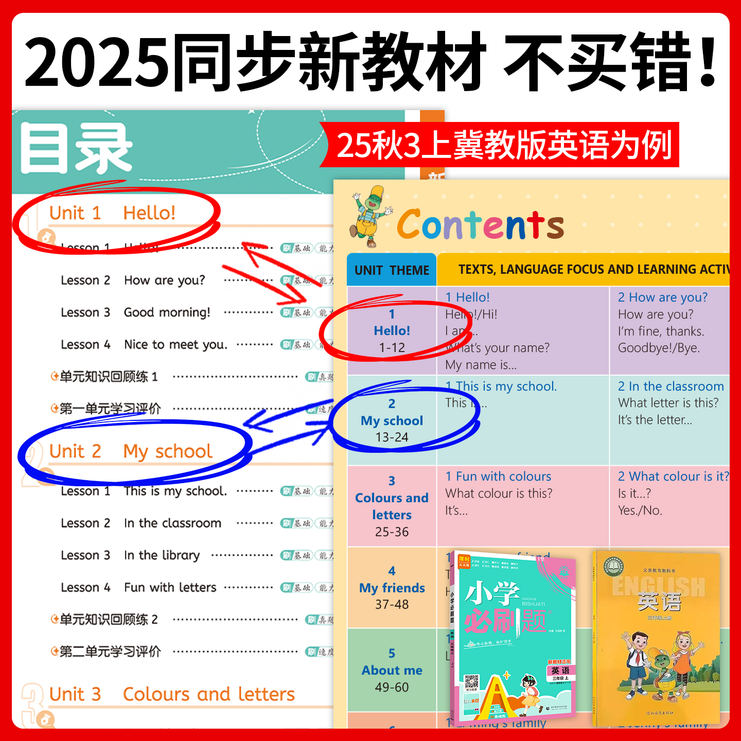 2025秋小学必刷题英语冀教版三年级四五年级六年级上册下册语文数学人教版河北适用全套教材同步练习册题试卷课时提优作业本天天练