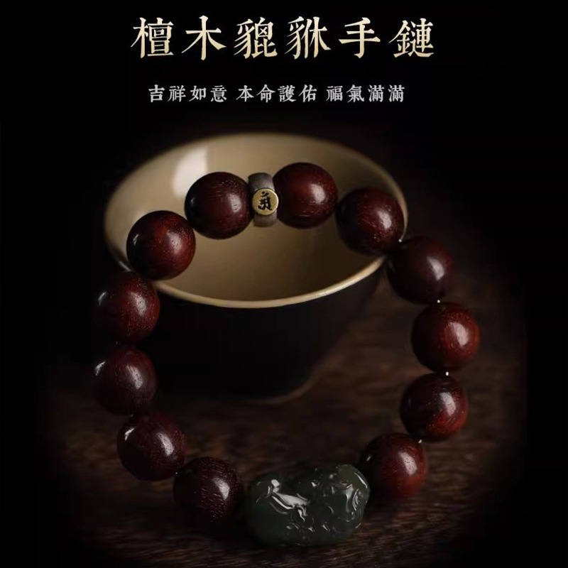 天然小叶紫檀手串男士和田玉貔貅手链生肖蛇本命年盘文玩佛珠礼物