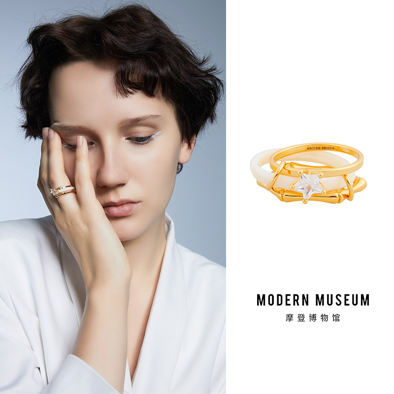 MODERN MUSEUM 摩登博物馆原创设计镀金锆石戒指女指戒设计感小众