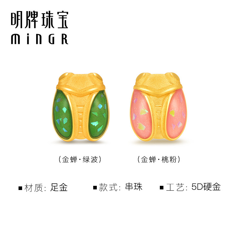 明牌珠宝黄金金蝉转运珠t硬金可爱动物串珠足金知了女手串AFP1035