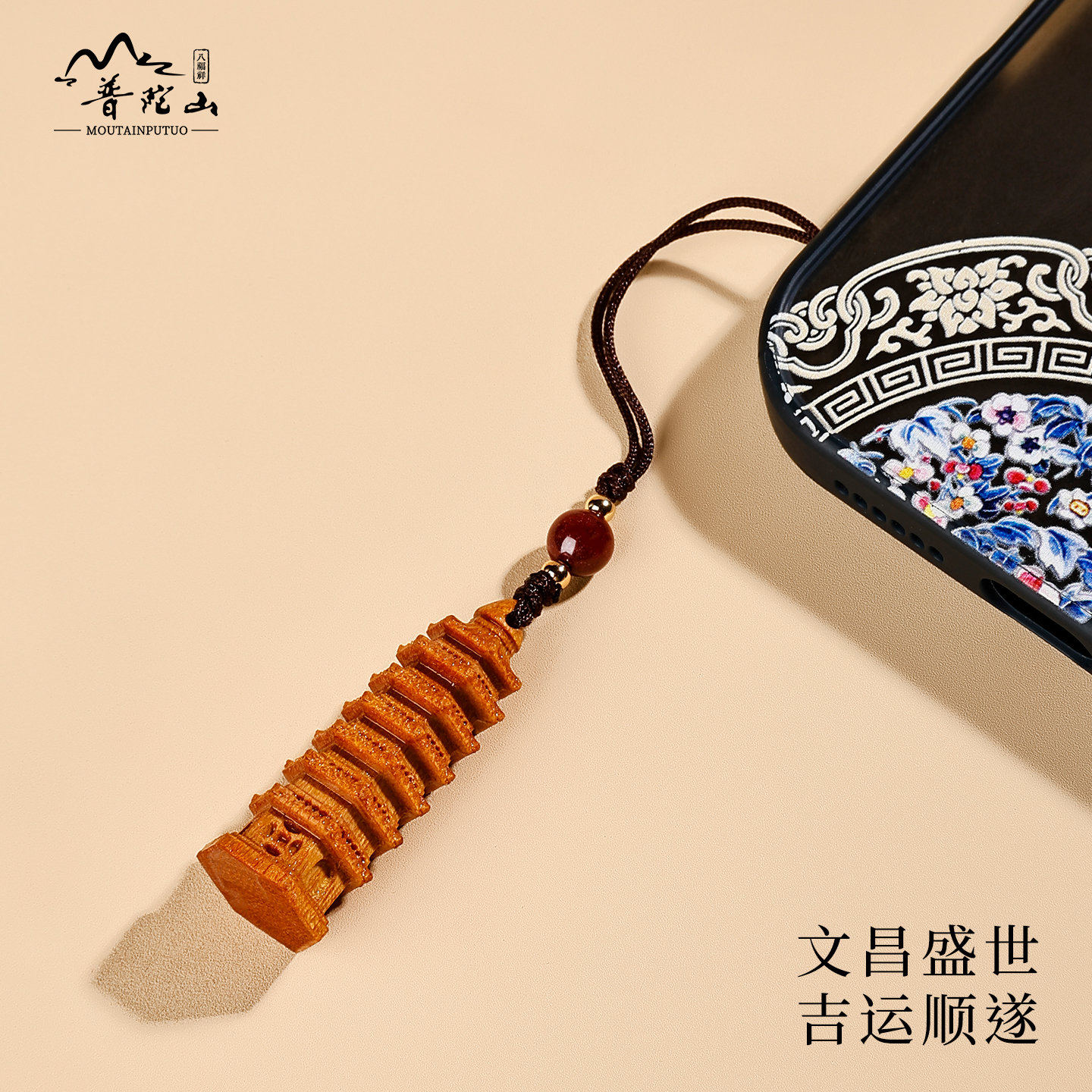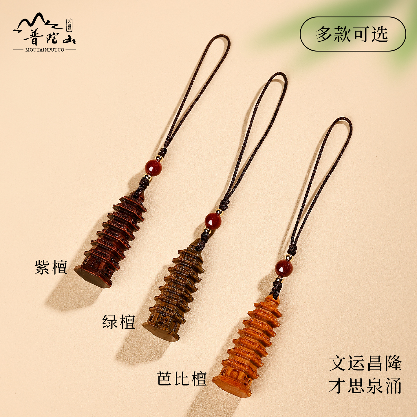 普陀山天然绿檀木文昌塔挂件女款檀香木手机链书包挂饰七层吉祥物