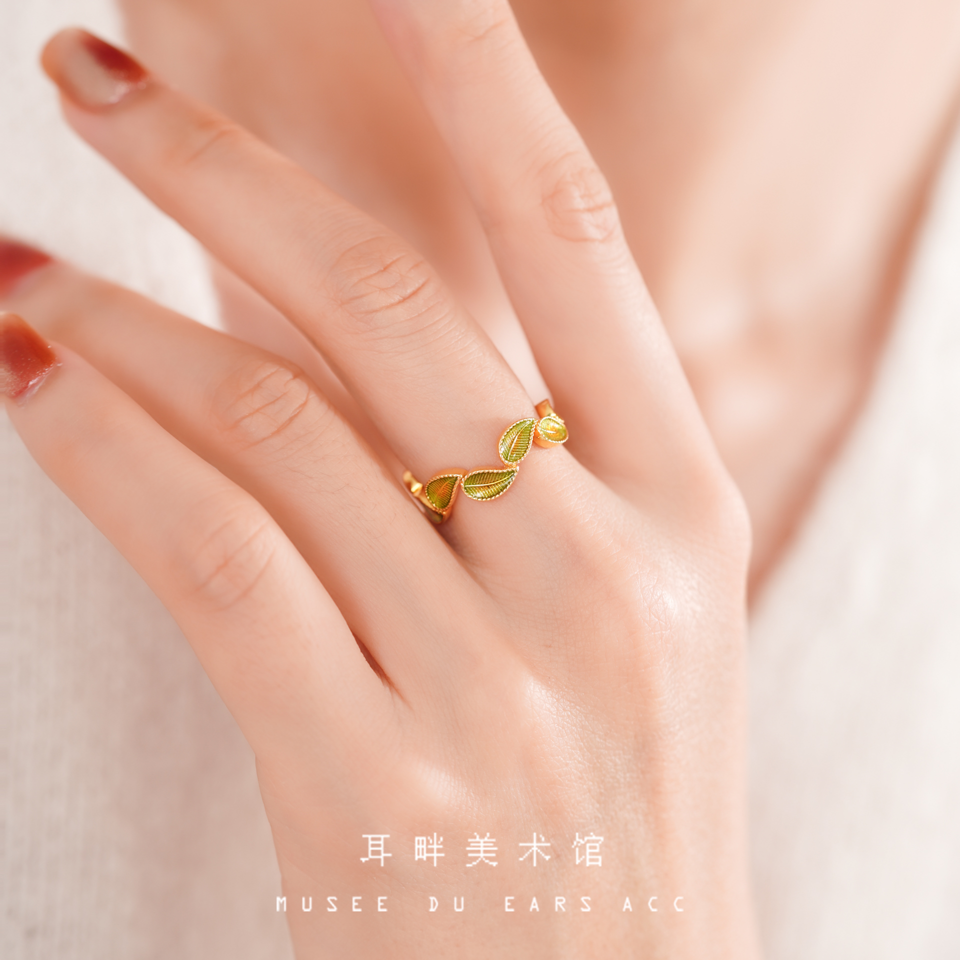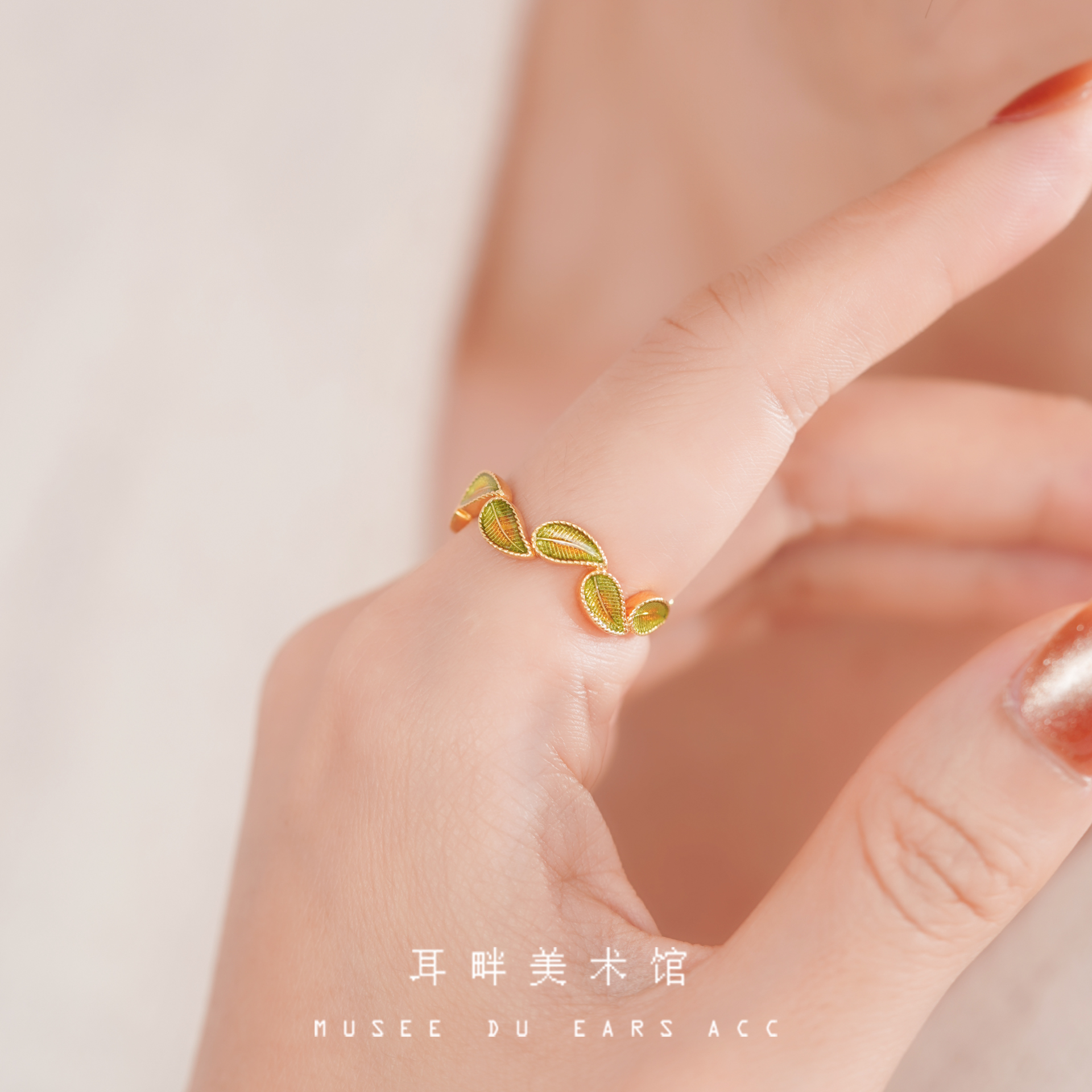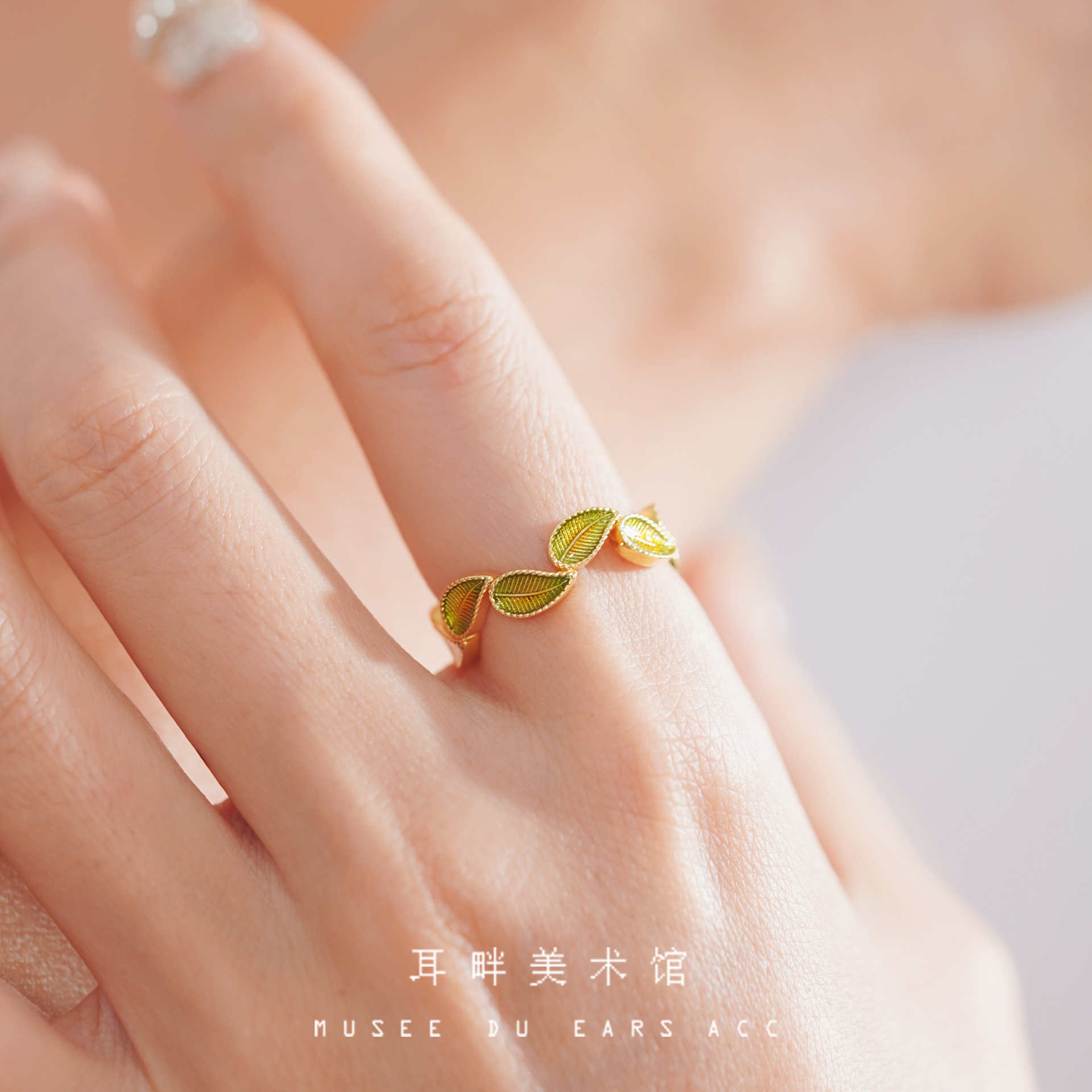 A绿叶子精戒指森系2025新款爆款戒指女小众设计轻奢高级感可调节