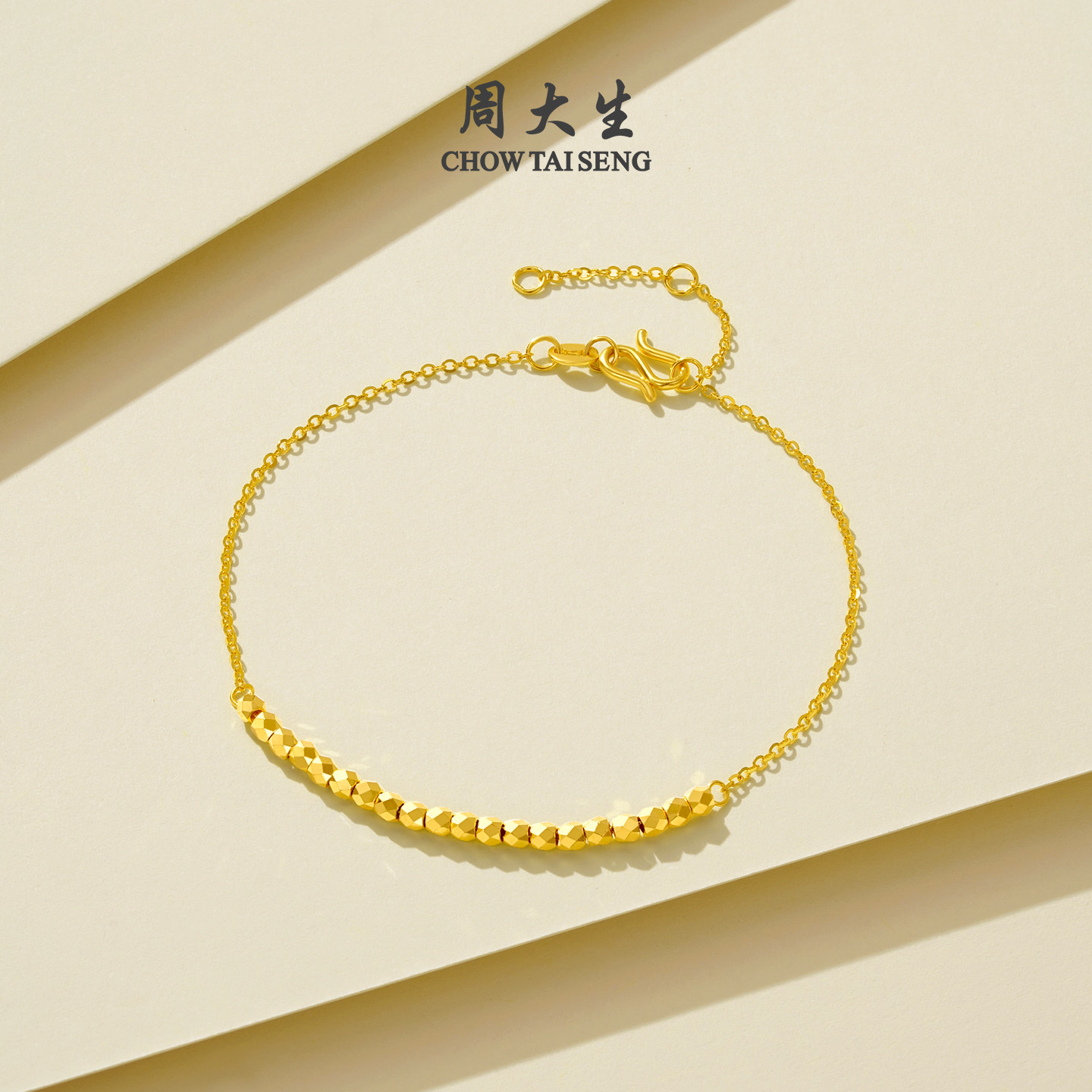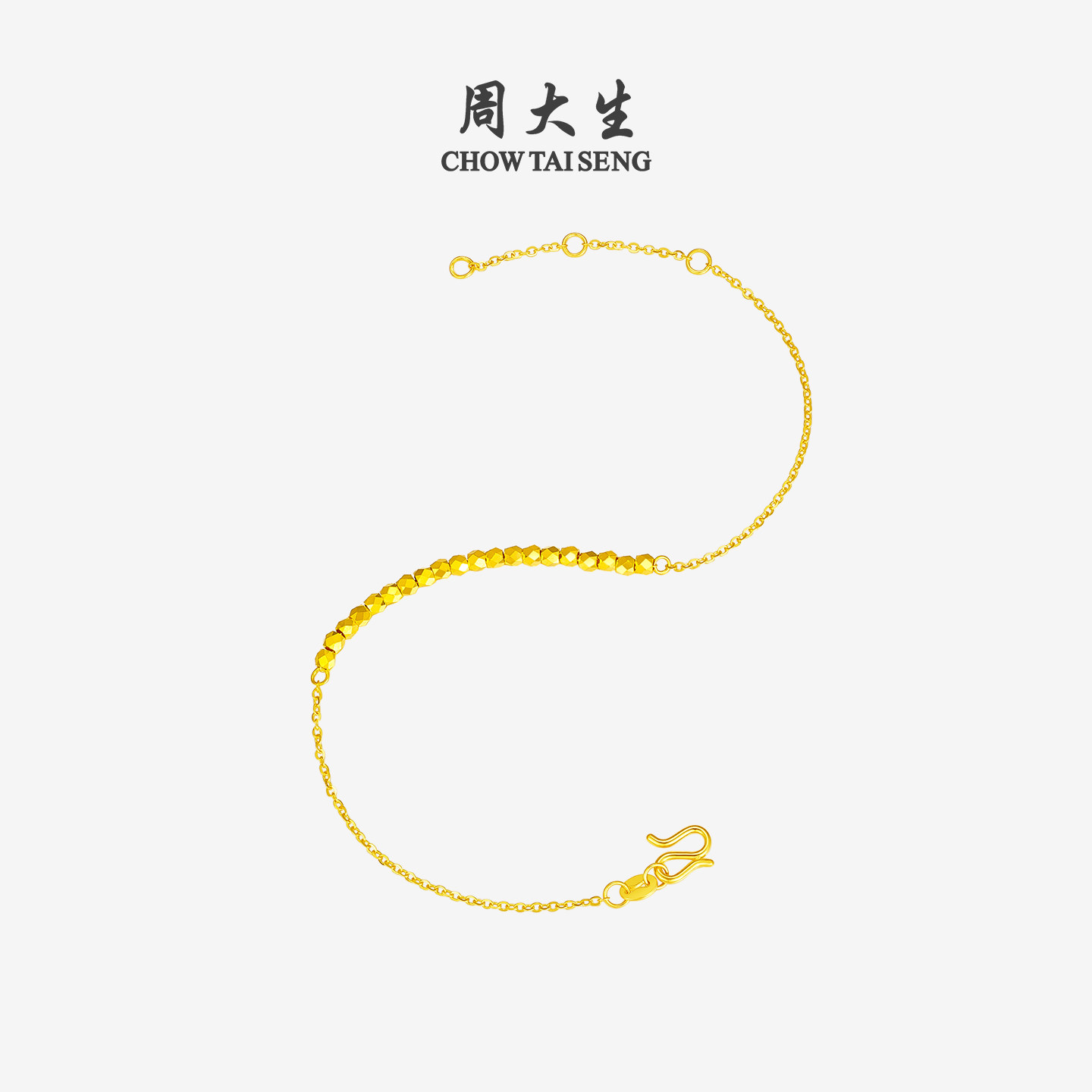 圣诞礼物周大生黄金手链女足金5G蹦迪珠金珠O字链手串手饰送女生