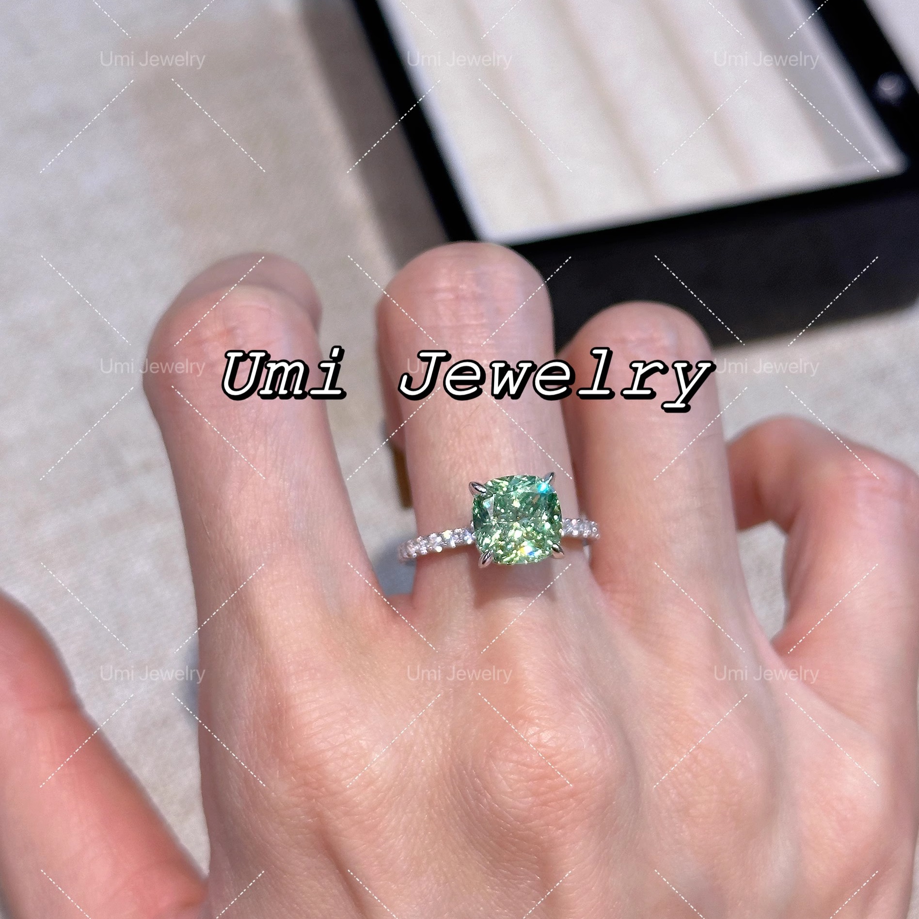 UMI家·轻珠宝/S925银镀金·复古宫廷风薄荷青草橄榄绿色钻石女戒