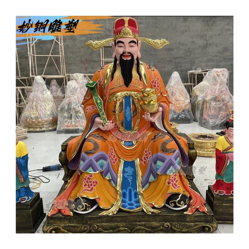 家用财神爷像五路财神铜佛像寺庙彩绘文财神佛像铜工艺品摆件