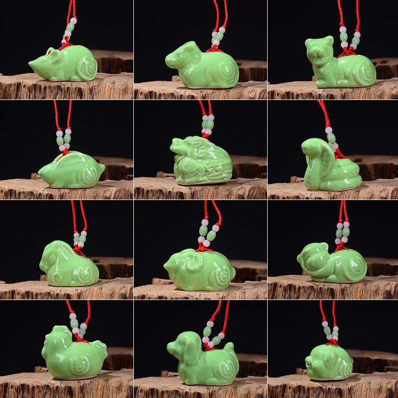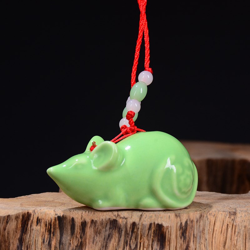 绿色小老鼠陶瓷生肖动物招财的挂件风水K家居客厅装饰品工艺品摆