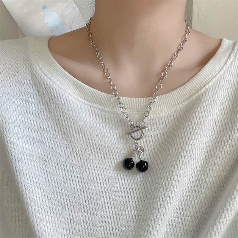 小众设计感黑色樱桃项链女锁骨链ins毛衣链辣妹链子配饰个性颈链