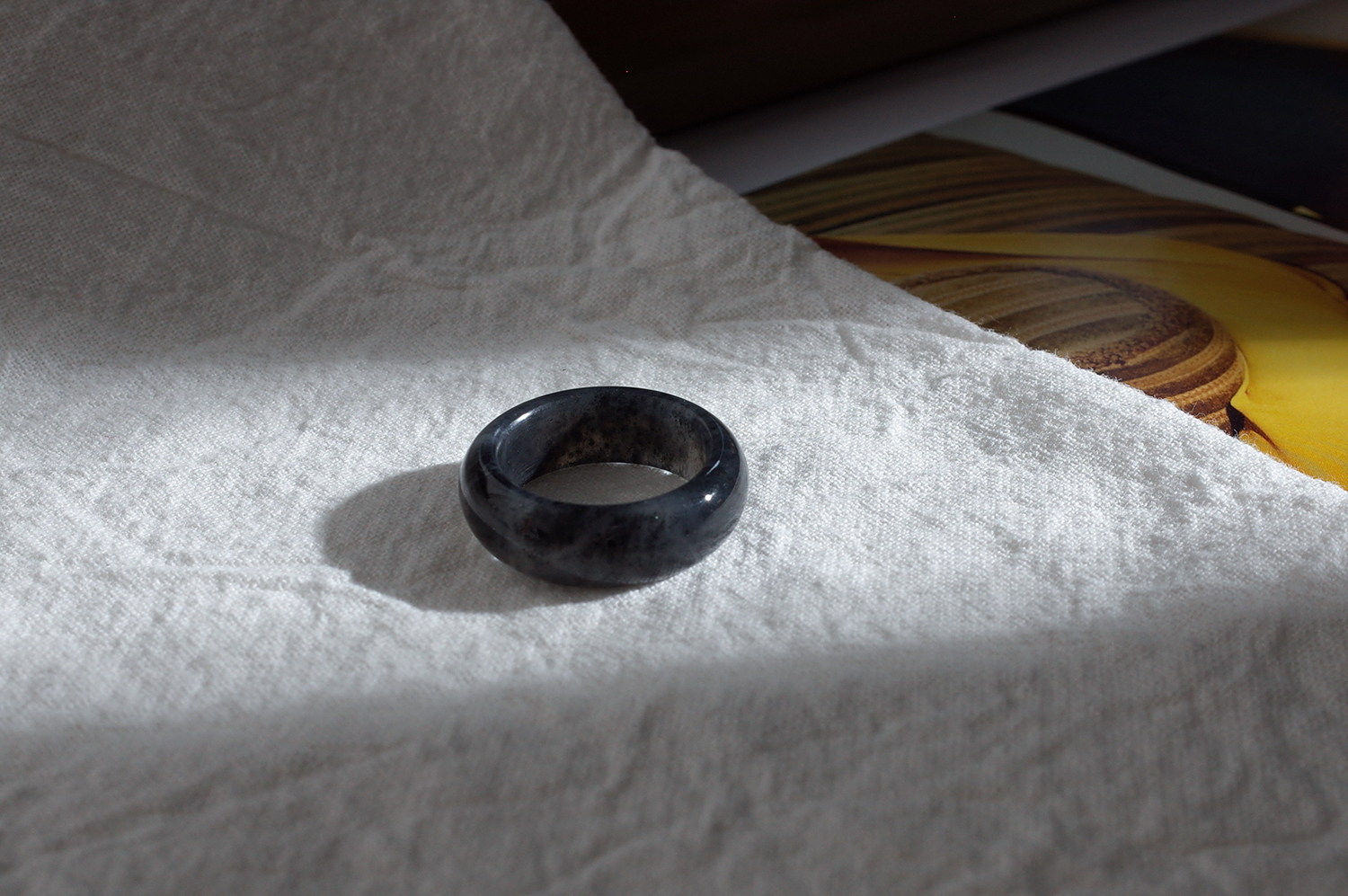 11号戒指 新疆和田玉青花籽料 黑色中宽圆弧泥鳅背素圈指环 4139
