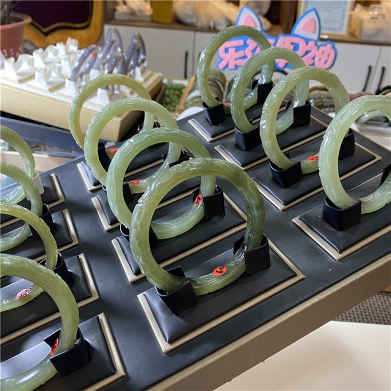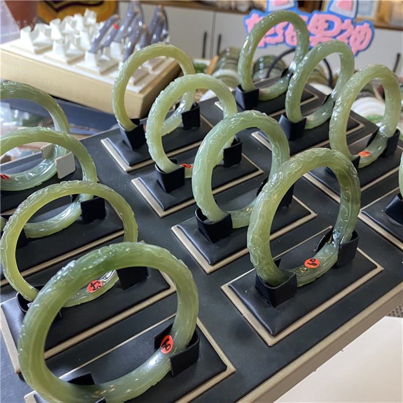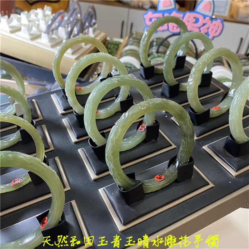 极速超值天然和田玉n青海料青玉晴水雕花手镯 料子冰 女款玉镯饰