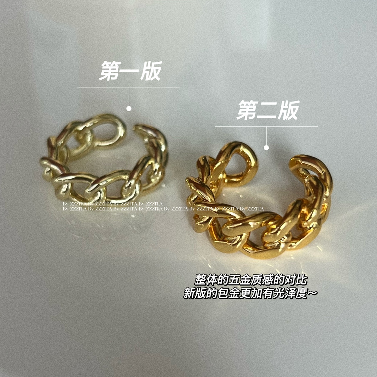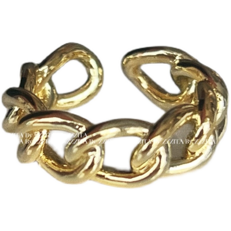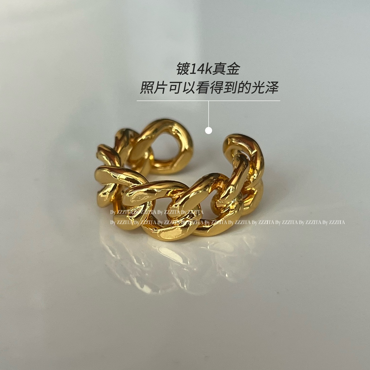 ZZZITA 时髦博主感~镀真金镂空链条麻花开口戒指欧美ins街拍小众