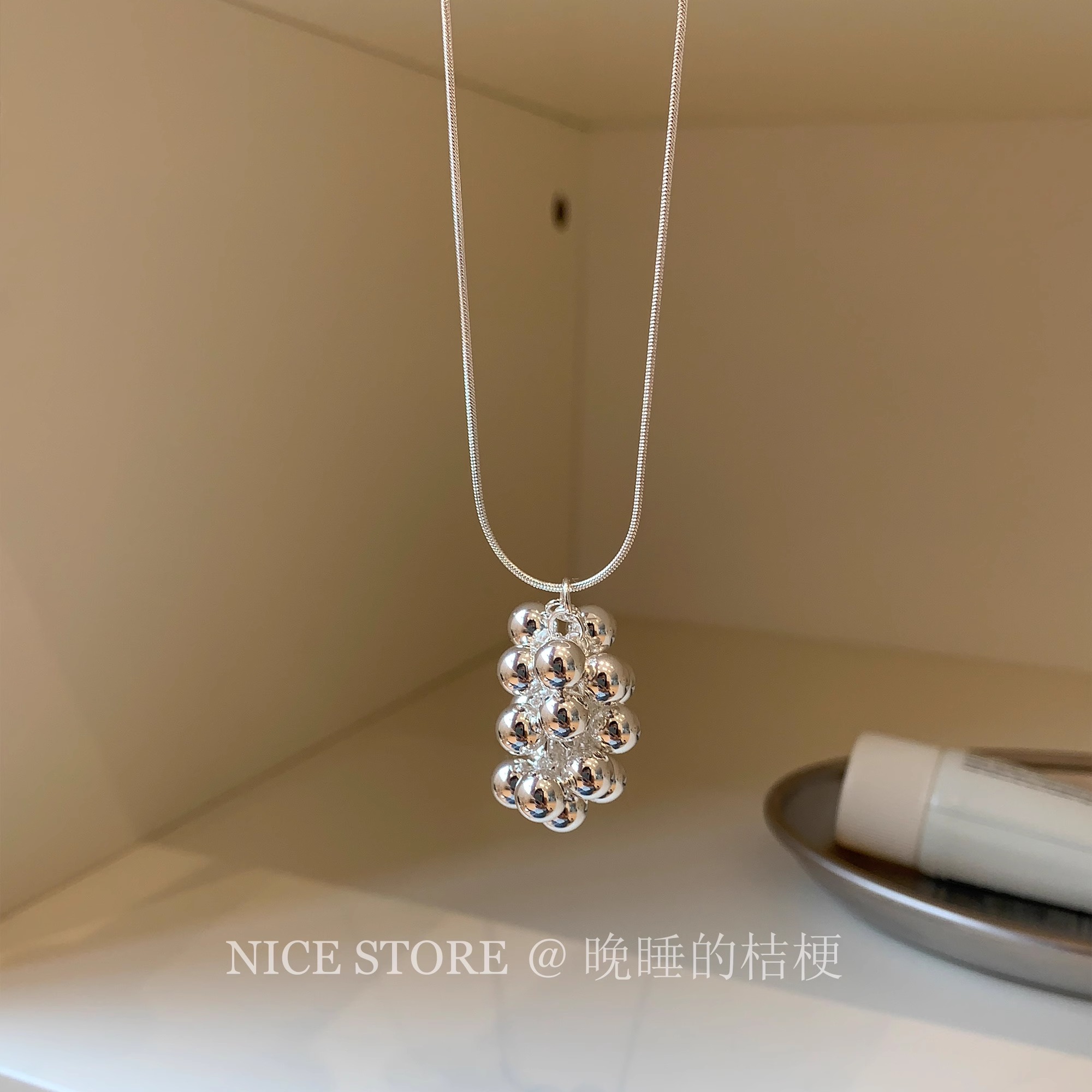 晚睡的桔梗「芭蕉下」 ins风球球串T恤项链韩系长款高级感颈链