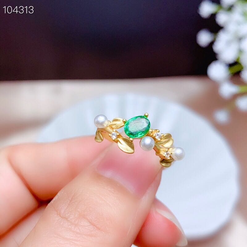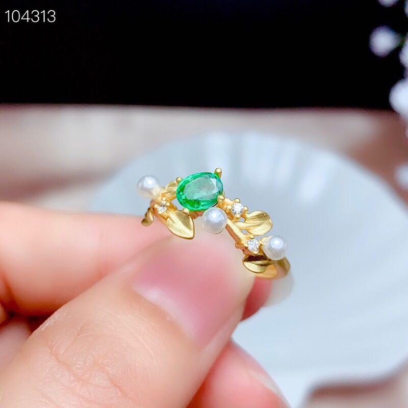 20年七夕情人节新款925银精工镶嵌哥伦比亚祖母绿古法金工艺戒指