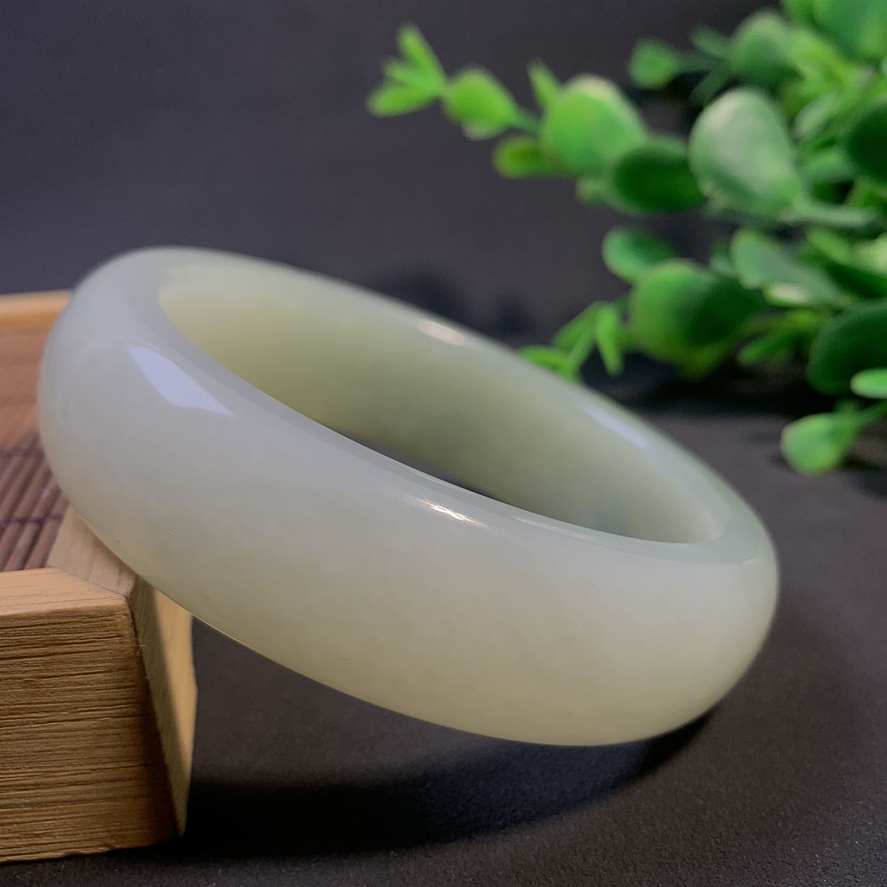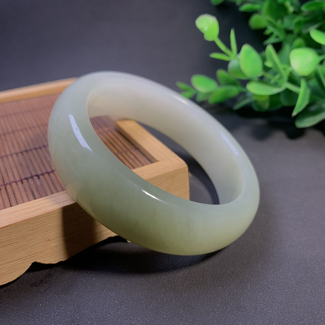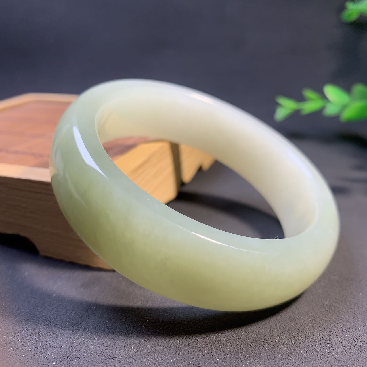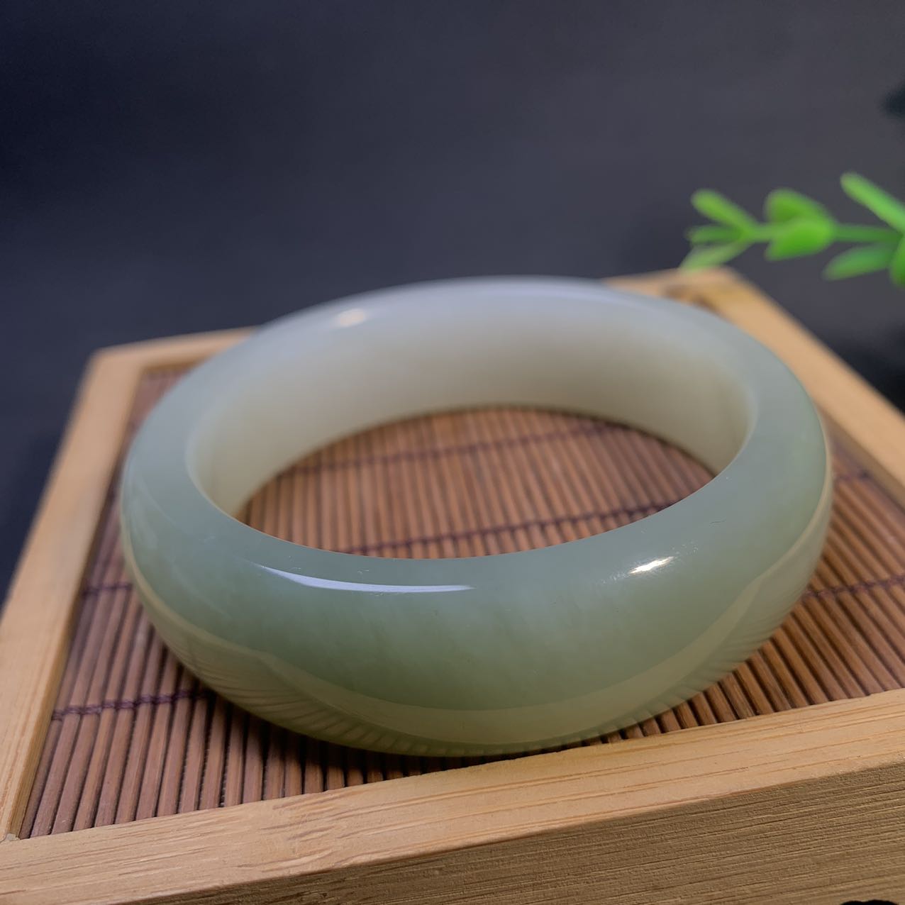 新疆和田玉手镯女款玉石手饰天然带翠青和田玉镯礼物59内径配证书