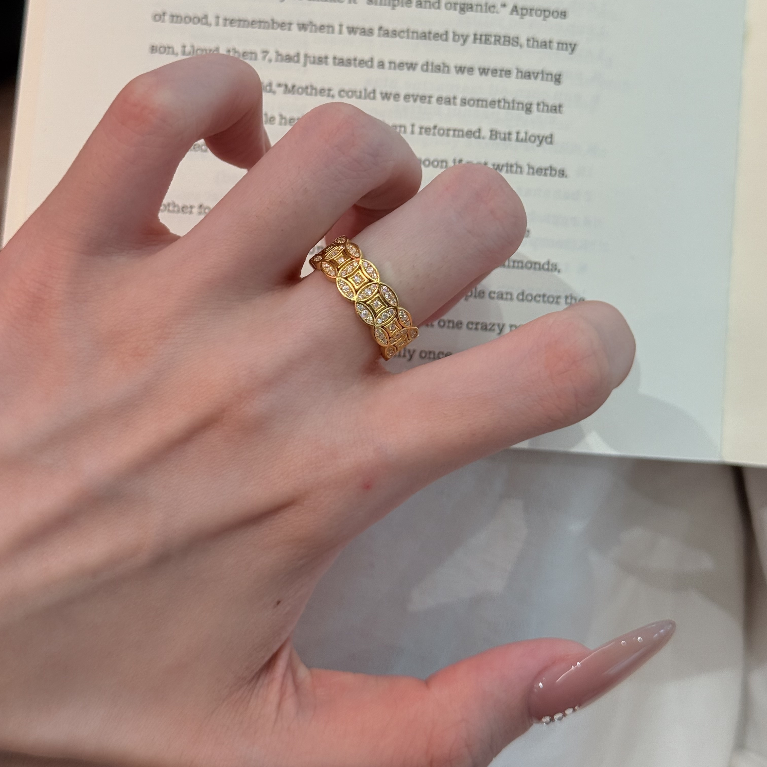 999足金5D满钻铜钱戒指男女同款黄金戒指招财好寓意足金节日礼物