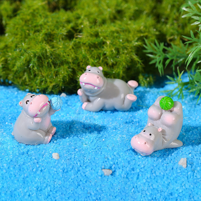 微景观摆件卡通可爱嬉闹树脂小摆件仿真小河马公仔DIY装饰品配件
