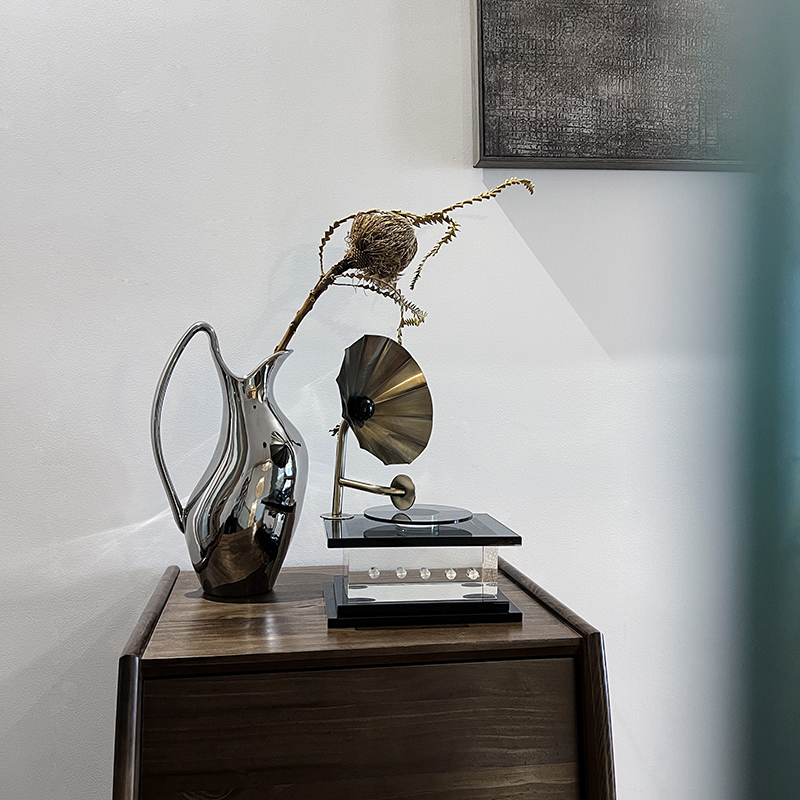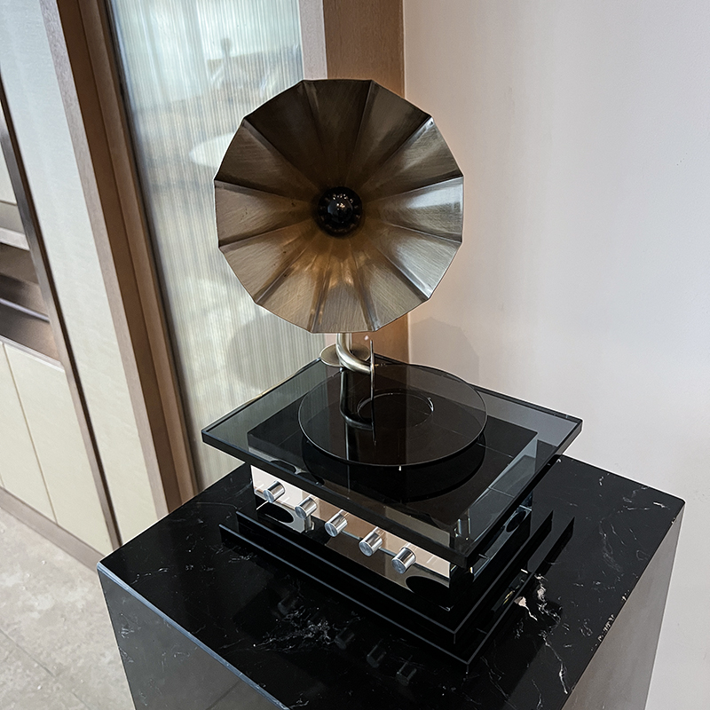 现代简约轻奢水晶复古留声机摆件样板G间办公室创意cd唱片机装饰