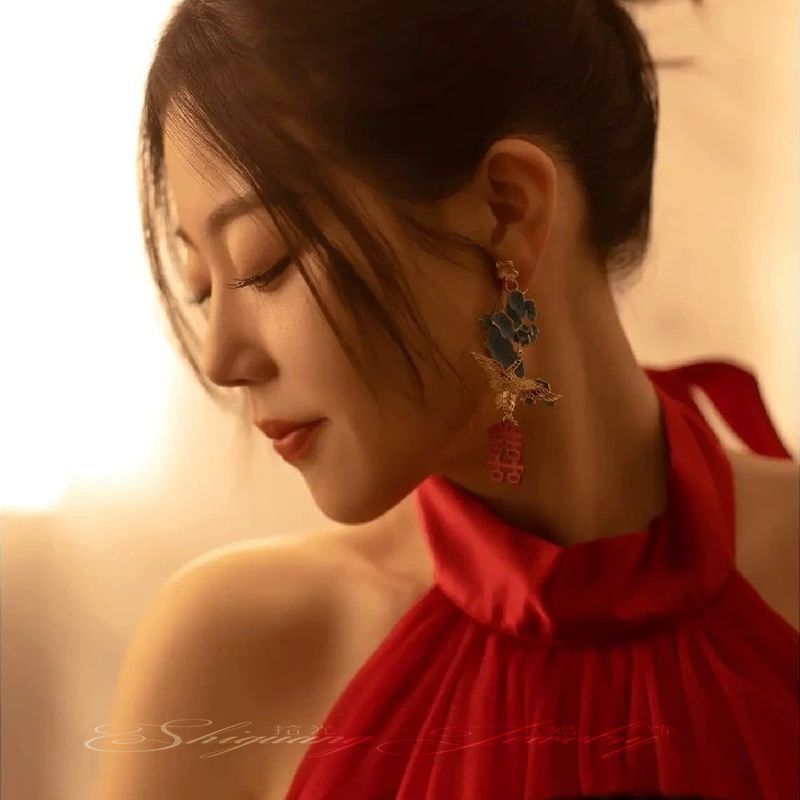 新中式新娘结婚耳饰双喜古风简约流苏耳环秀禾服晨袍旗袍耳坠配饰