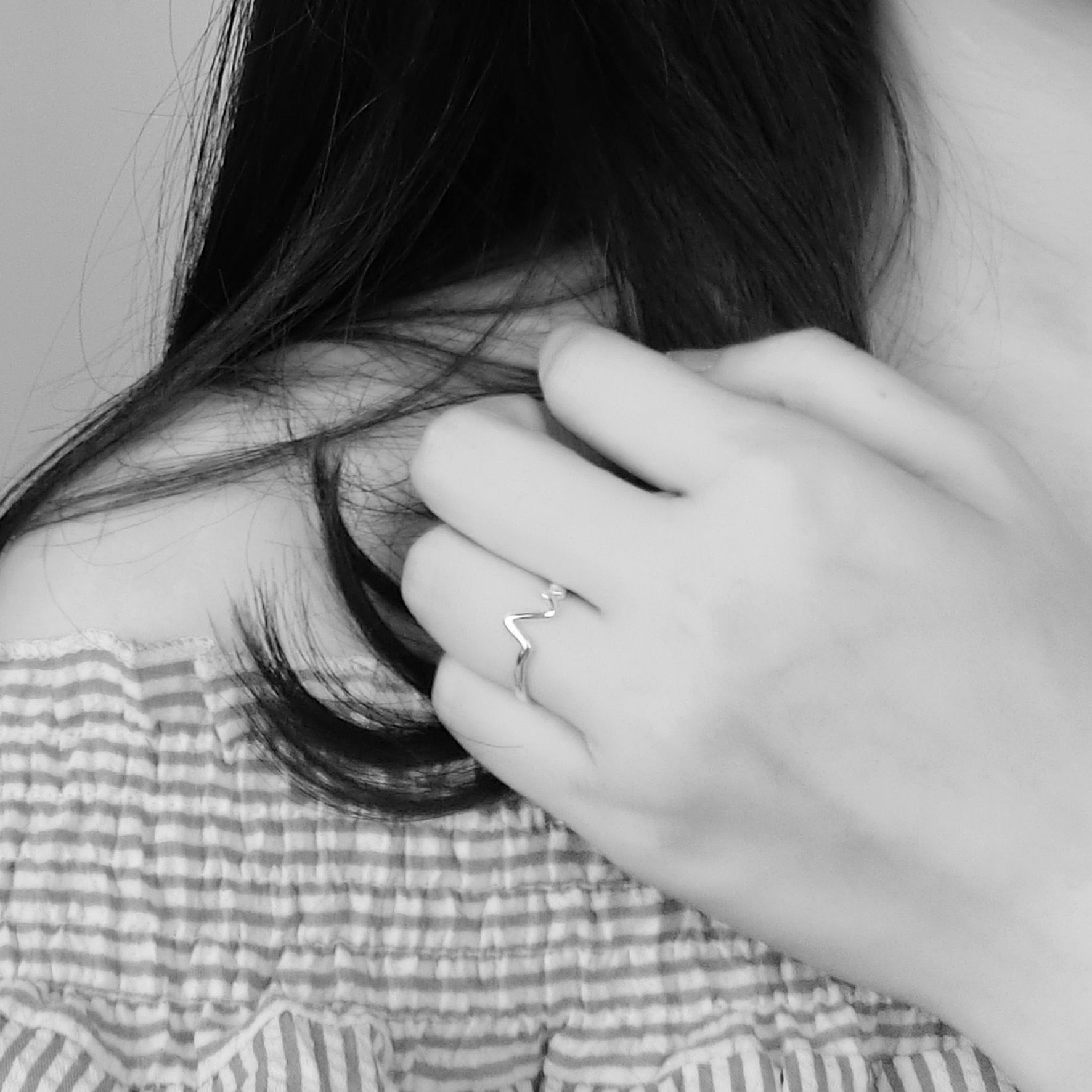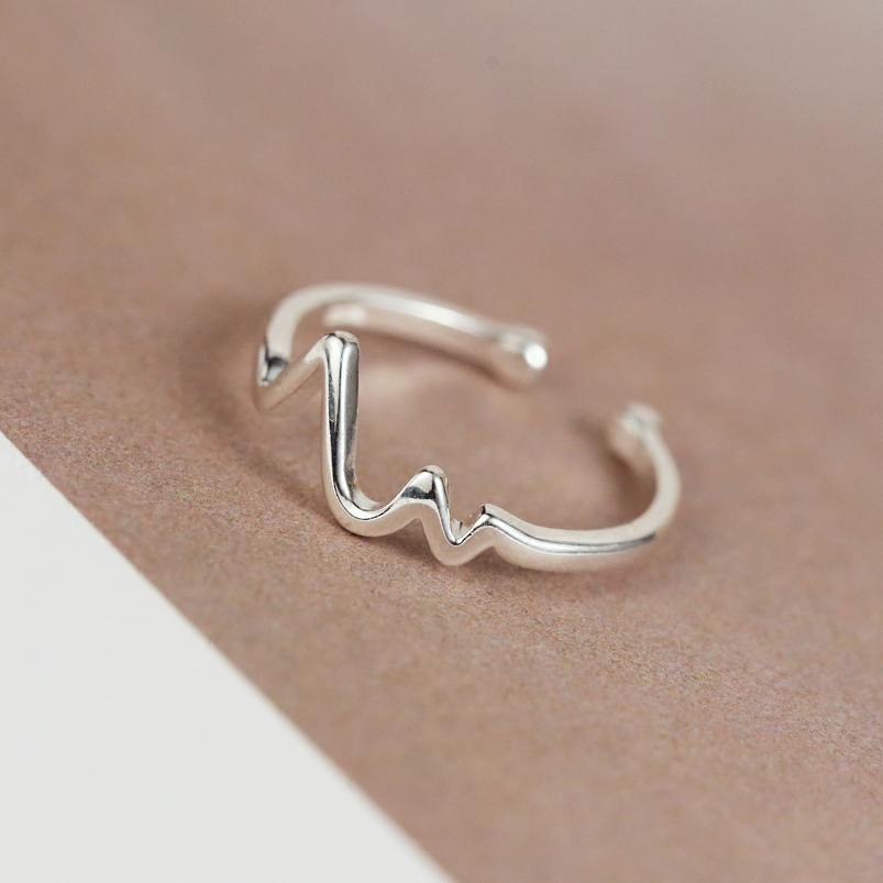 简约设计戒指 925纯银心动开口创意心跳心电图气质淑女情人节礼物